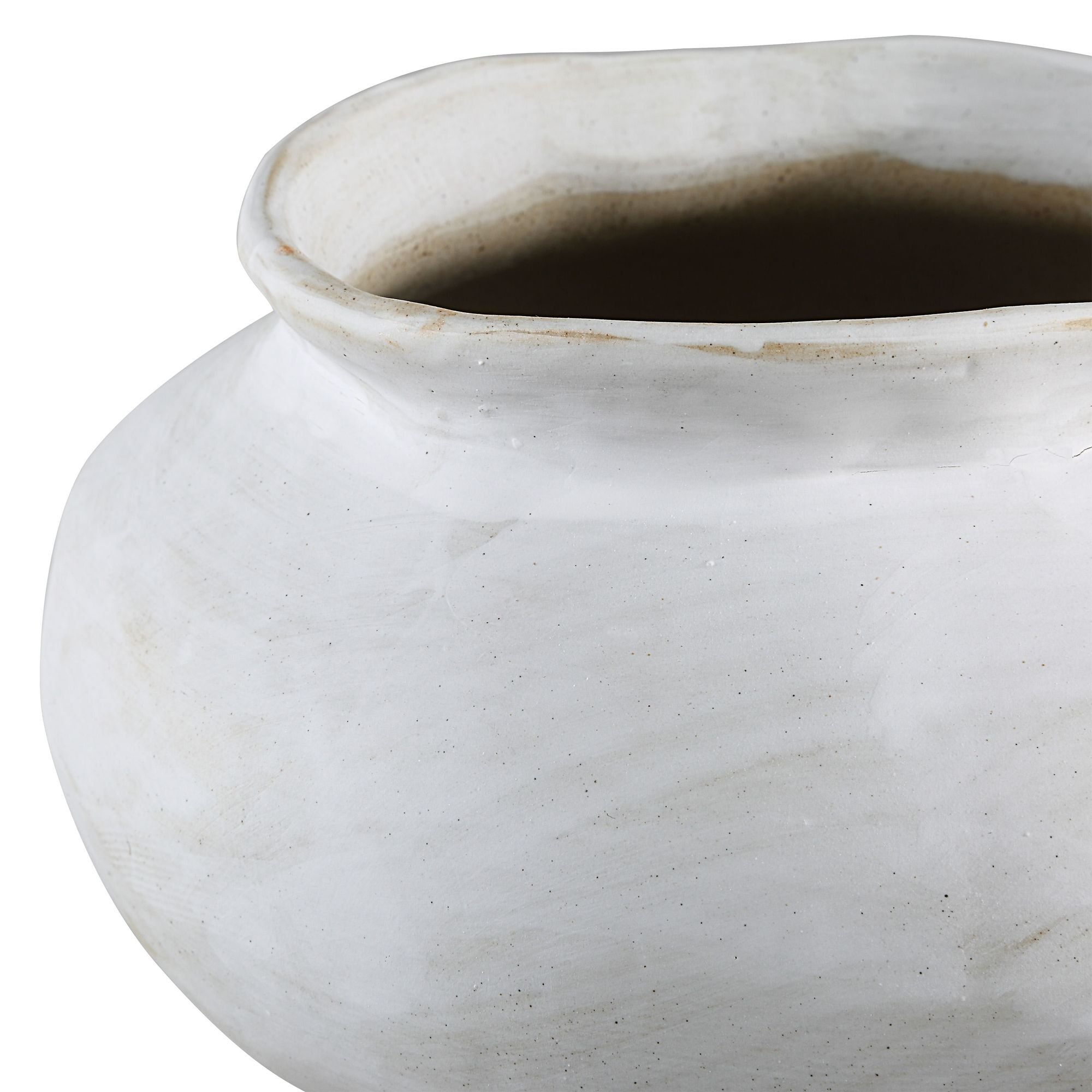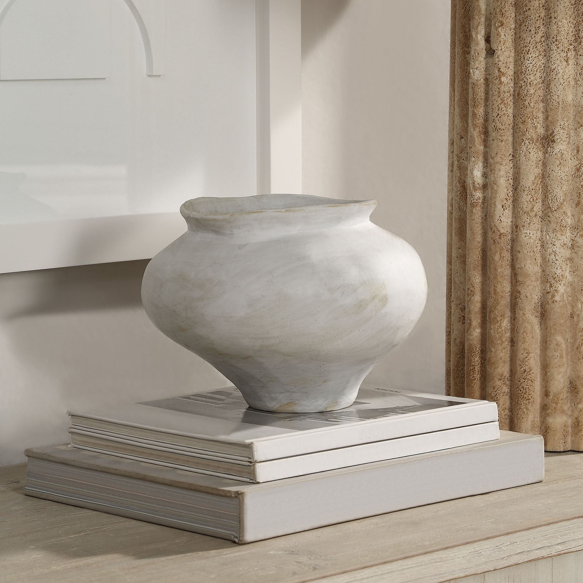 Embrace an artisanal vibe in any interior with the fresh-off-the-wheel look of this stylish 8.85-inch diameter vase. Created from terracotta with a hand thrown feel and a unique antique white painted finish, this vase will elevate any contemporary or transitional space. And because it’s watertight, it can hold fresh blooms to fill the room with botanical beauty.