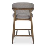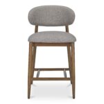 The Ellie counter stool features a padded winged backrest, a refined invitation to gather. A robust rubberwood frame bathed in a dark espresso brown finish harmonizes with the rustic, warm brown, easy-to-clean performance fabric upholstery, adding a vintage charm with modern convenience–a versatile design that complements a myriad of interior styles.
