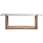 The Ellis Console, with its long and lean stature, is expertly crafted to enhance hallways and other elongated spaces. Its natural oak base and honed white quartz top present a harmonious two-tonal aesthetic, infusing any area with an organic yet elegant charm, ideal for creating an inviting and sophisticated entryway or accent space.