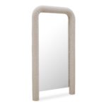 - Large floor mirror with modern, soft corners with ruched detail & soft-touch fabric upholstery