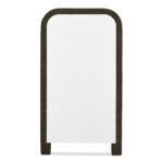 - Large floor mirror with modern, soft corners with ruched detail & soft-touch fabric upholstery