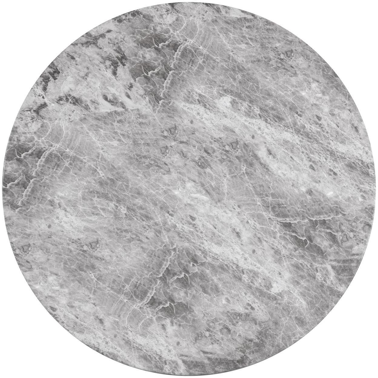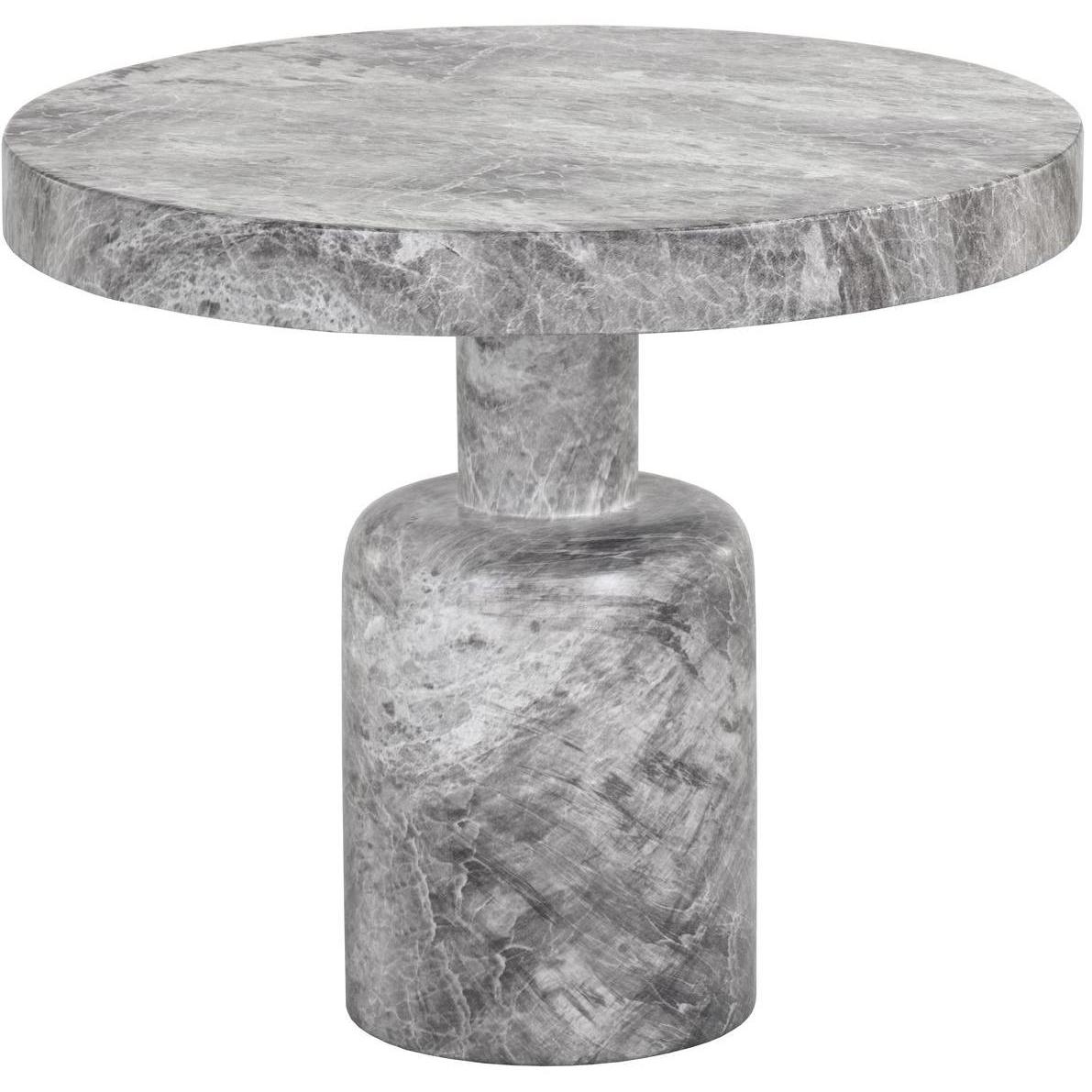 A clasically chic end table with an elegant design. Featured a round table top with a curved tabletop base in matching grey faux marble finished concrete.