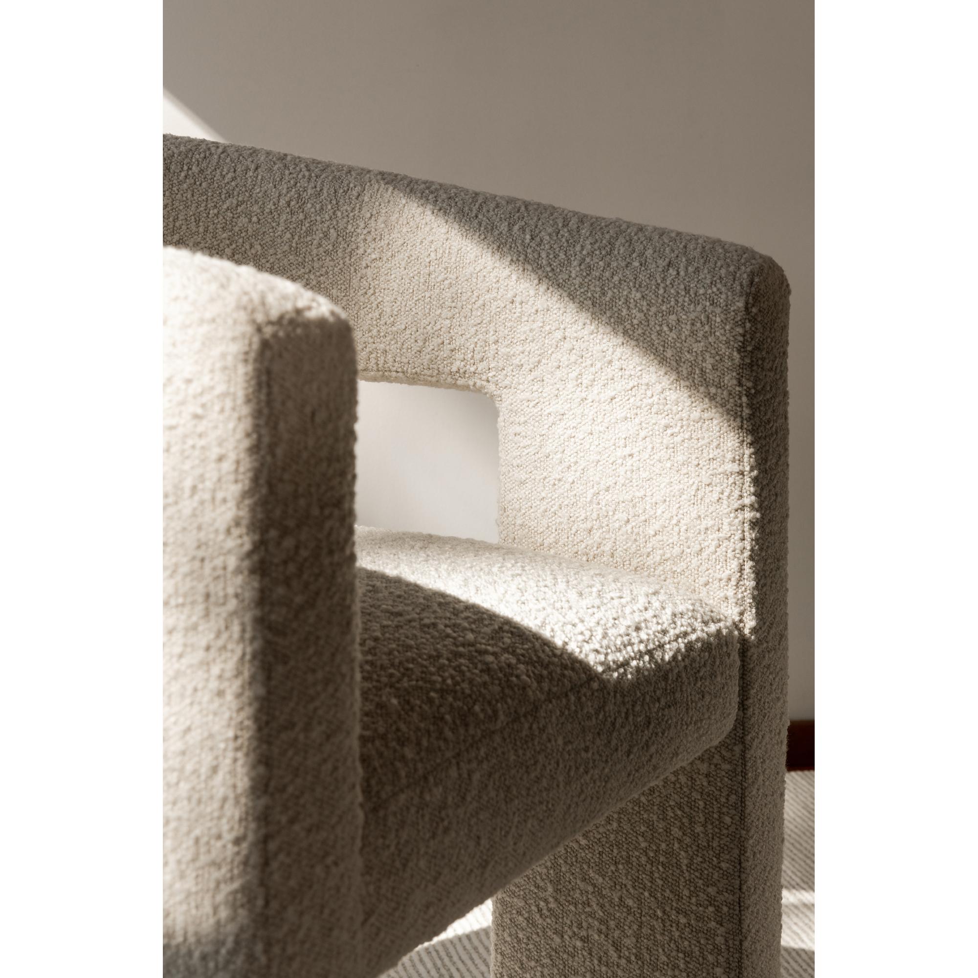 The armchair, refined. With Elo, the essential design elements of an armchair have been distilled to an utmost sculptural form while retaining 100% comfort. A modernist creation that embraces softness alongside sculptured simplicity, settle right into the plushly padded seat and curvaceous embrace of Elo’s softly rounded back and armrests. A durable, molded frame of solid plywood offers support, while its tactile upholstery offers enduring quality. Highly styled, love Elo three ways as a desk chair, dining chair, or singular statement accent chair. Surprising from every angle, Elo blurs the boundaries between art and furniture as a most welcoming, fluid design.