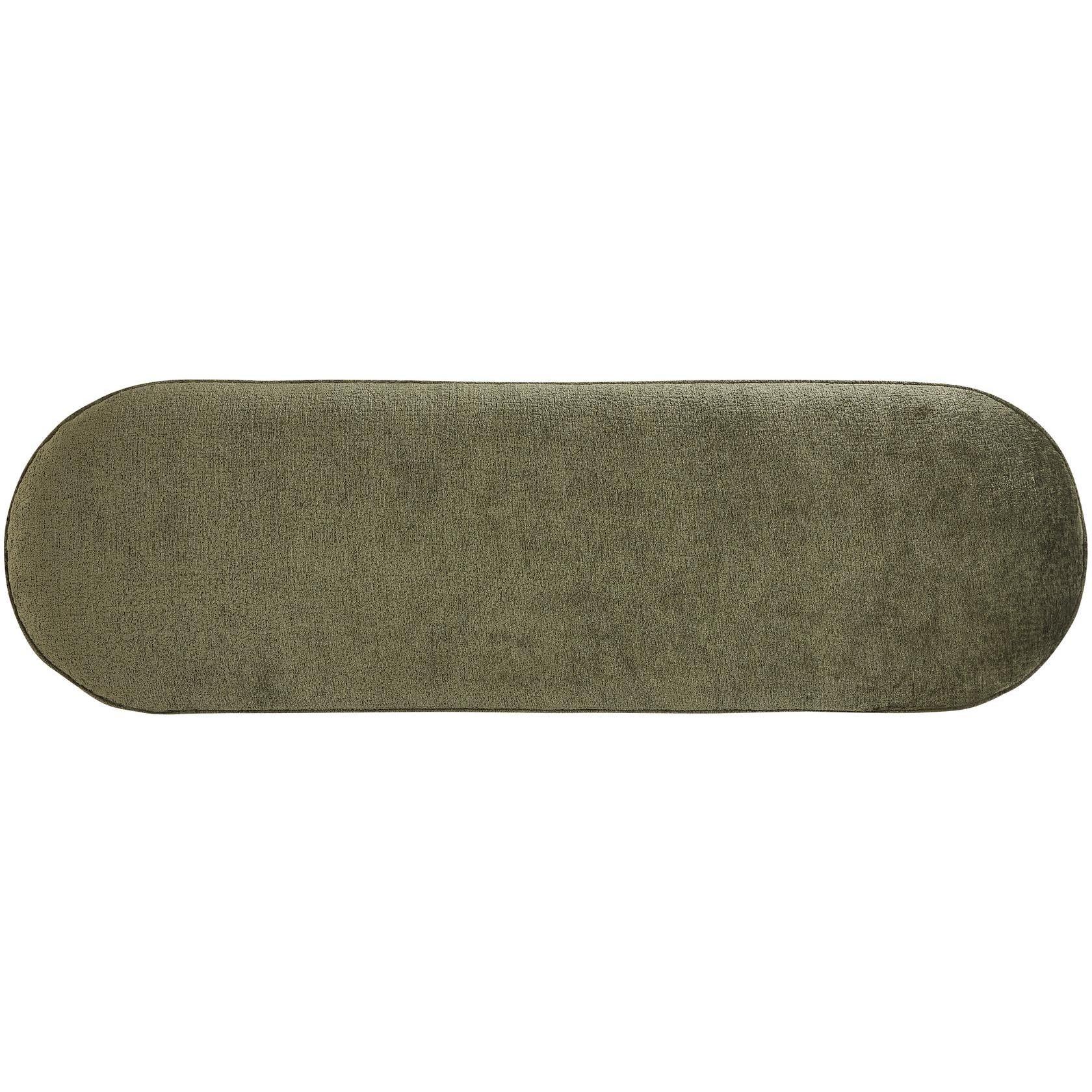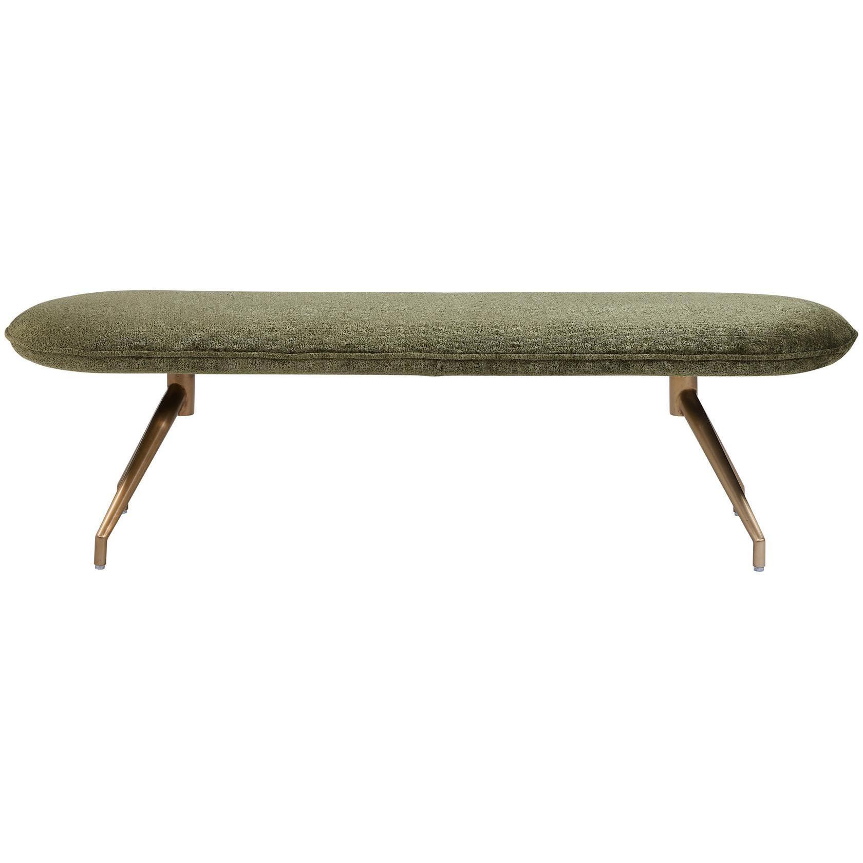 With a stunning oval design, this modern bench will add style and function to any space. Stocked in bergen olive and taupe fabrics, and completed with an antique brass powder coated stainless steel base.