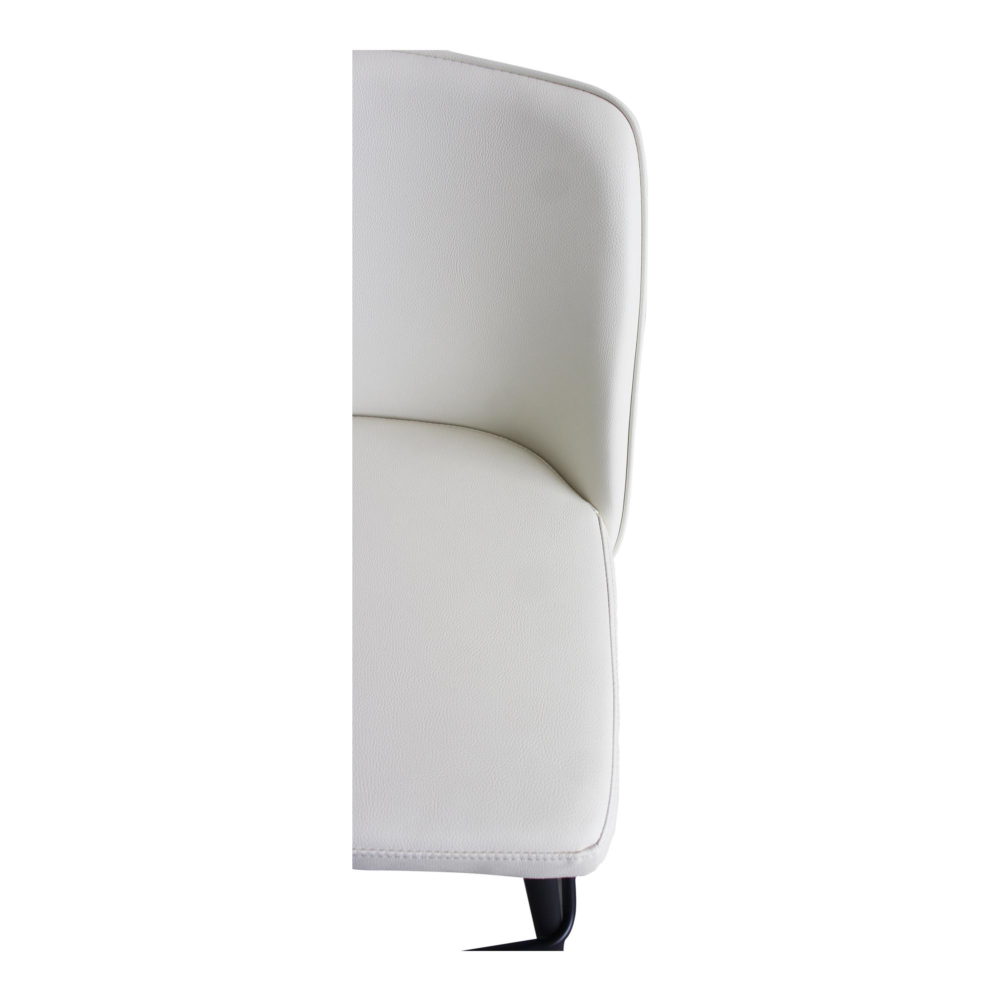 A sleek and stylish counter stool for the modern dining area. Metal legs offer a sturdy base, and it’s upholstered in soft white vegan leather.
