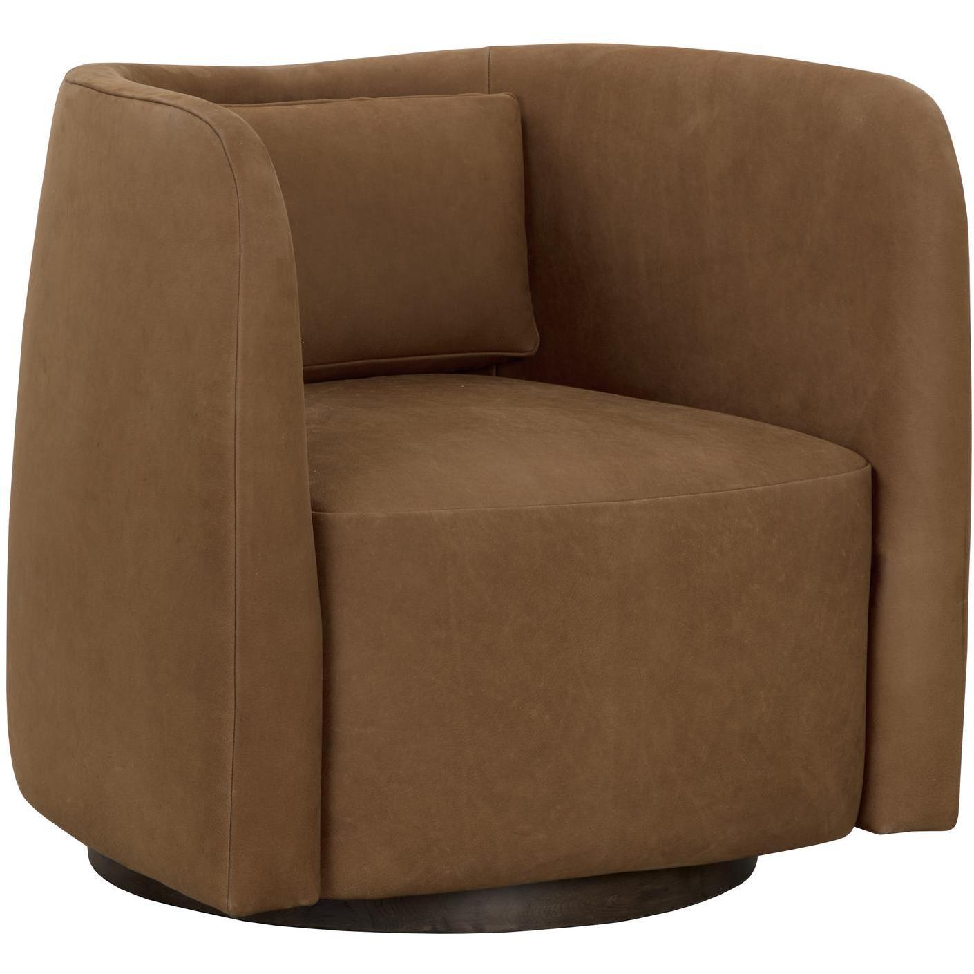 Emilie Swivel Lounge Chair – Nubuck Caramel Leather