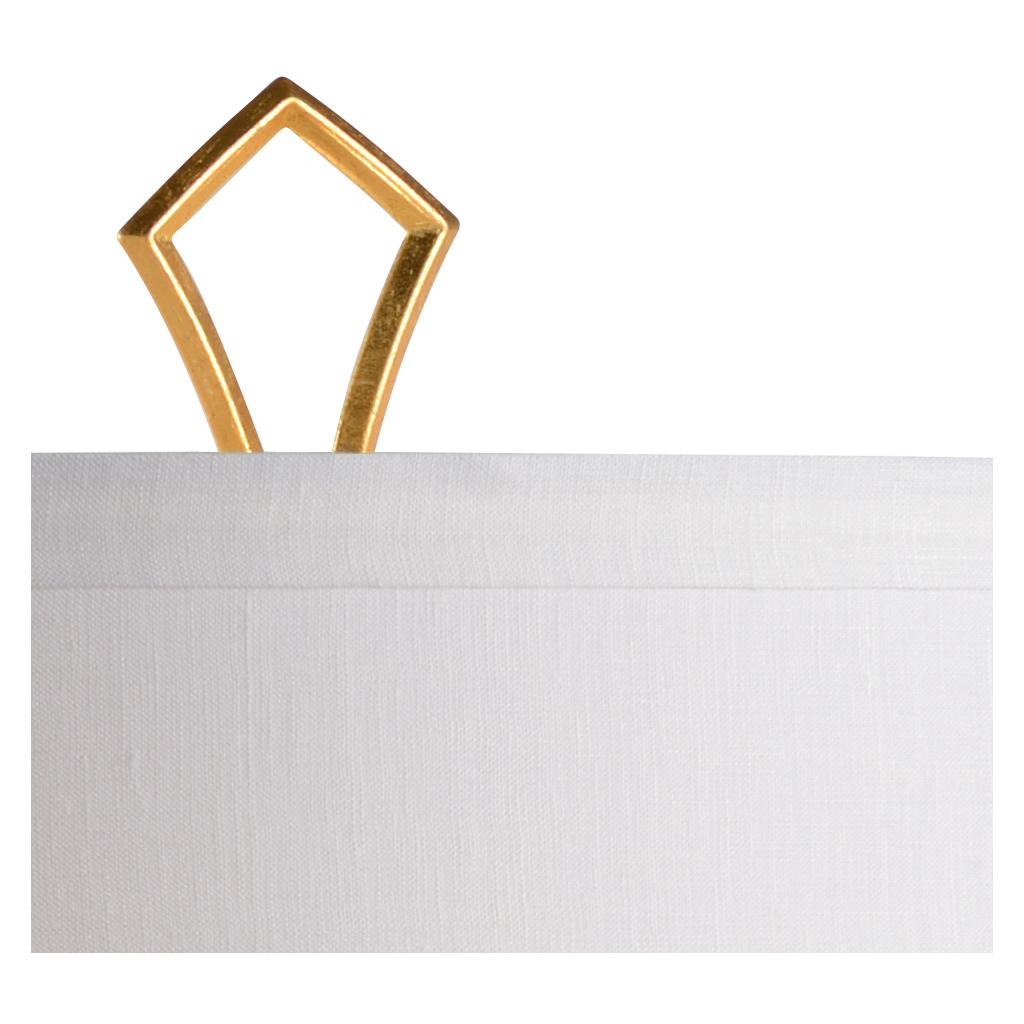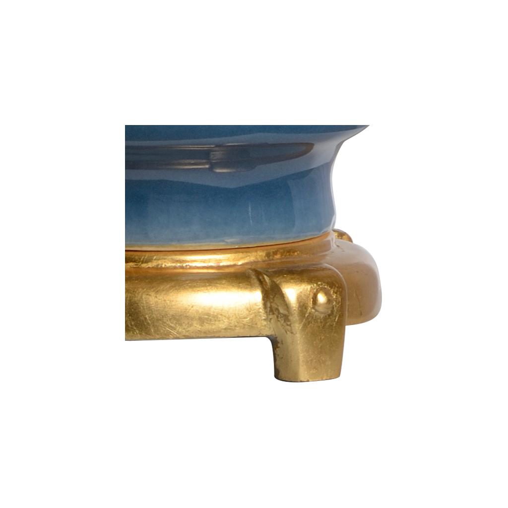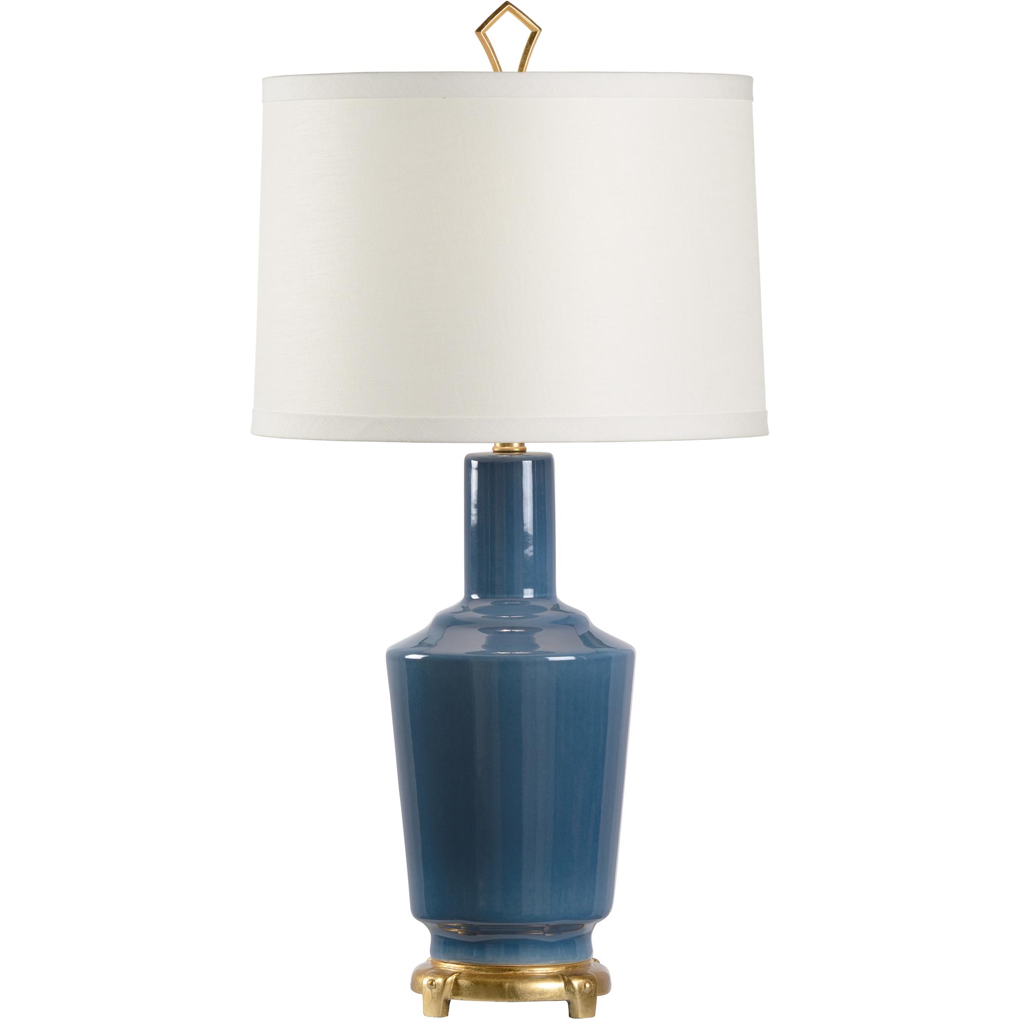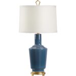 The Emma Lamp exudes timeless elegance with a refined silhouette and subtle vintage charm. A warm antique gold leaf base supports a blue glazed vintage-inspired ceramic vase, creating a sophisticated foundation for the classic drum shade. Topped with a geometric gold finial, this lamp brings graceful style and soft ambient light to any interior setting.