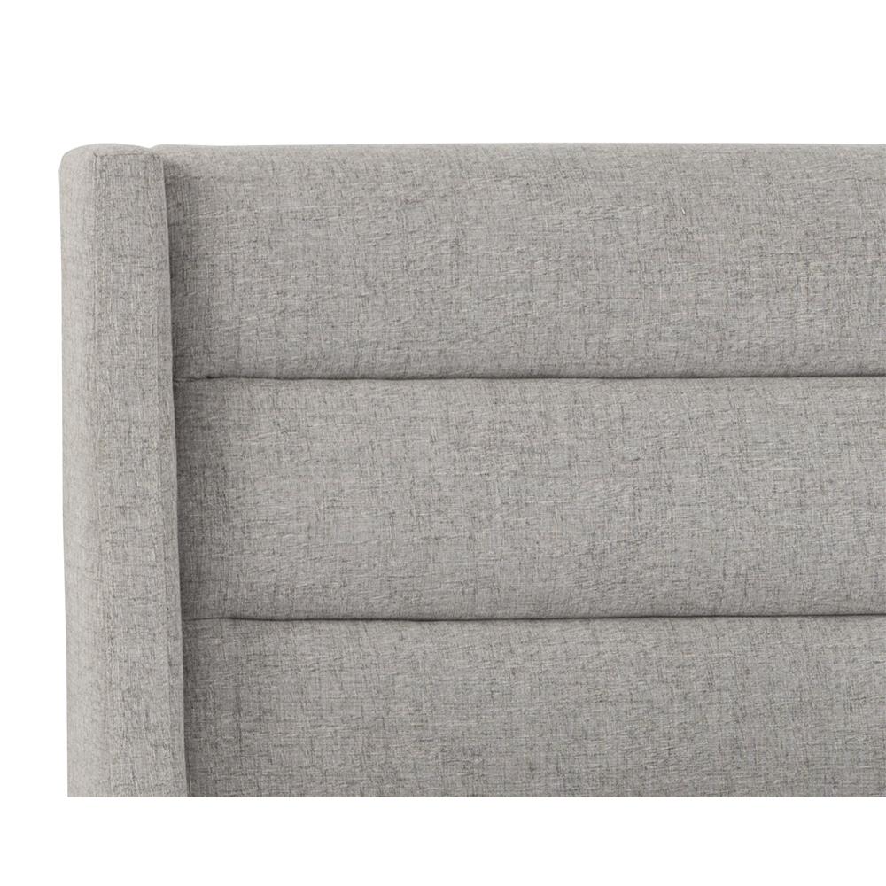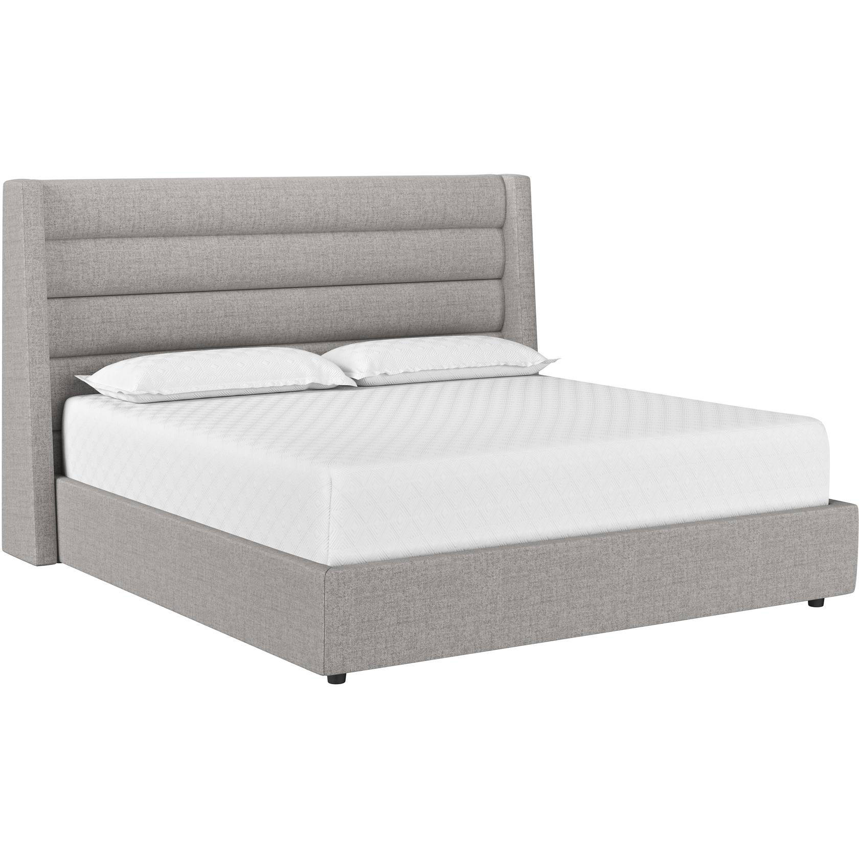 This upholstered bed features horizontal channel tufting for a modern look. Stocked in marble fabric. No box spring is required and slats are included.