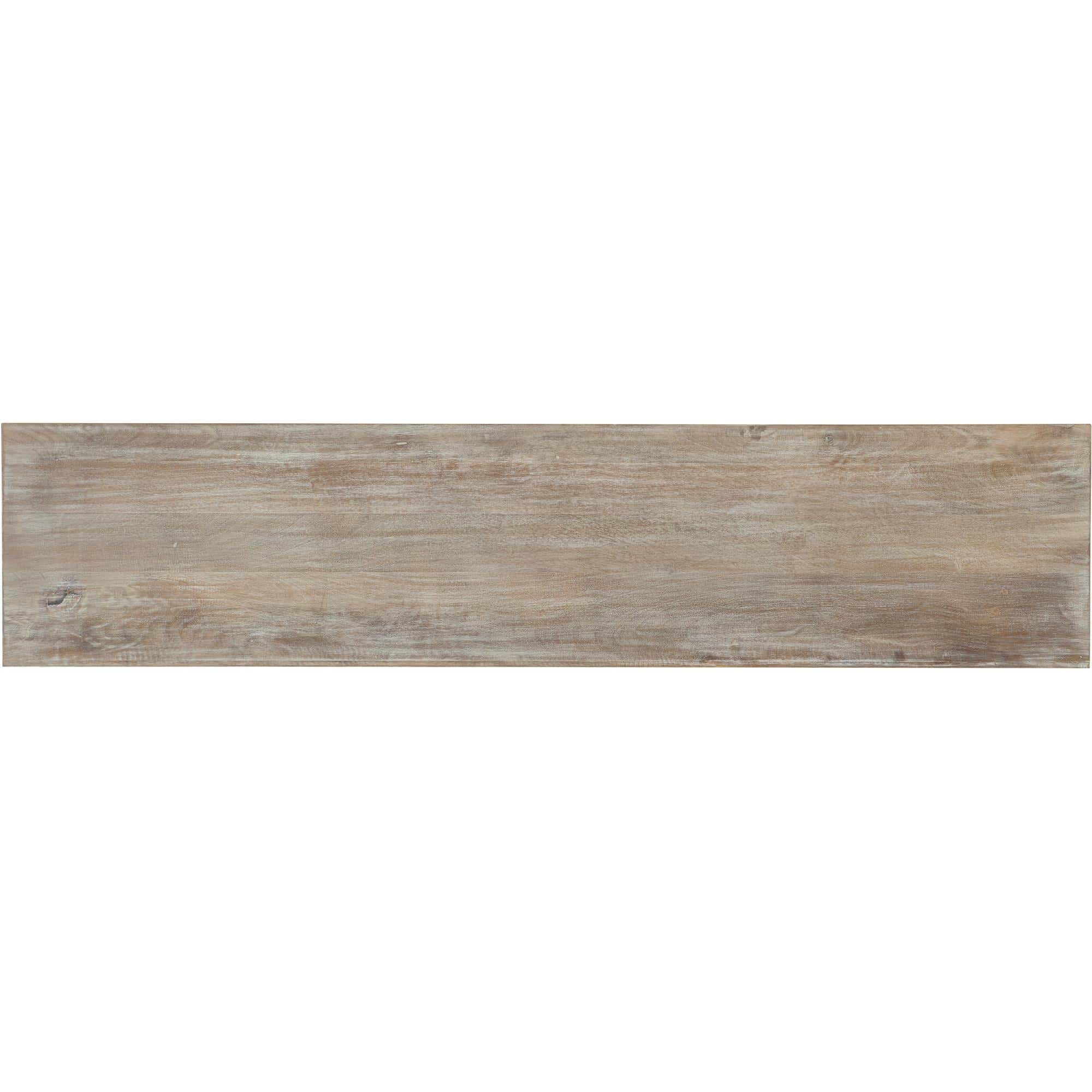 Finish: Medium wood tone with cream glaze and heavy distressing. Antique bronze-colored bar pull hardware with cream glaze.