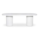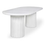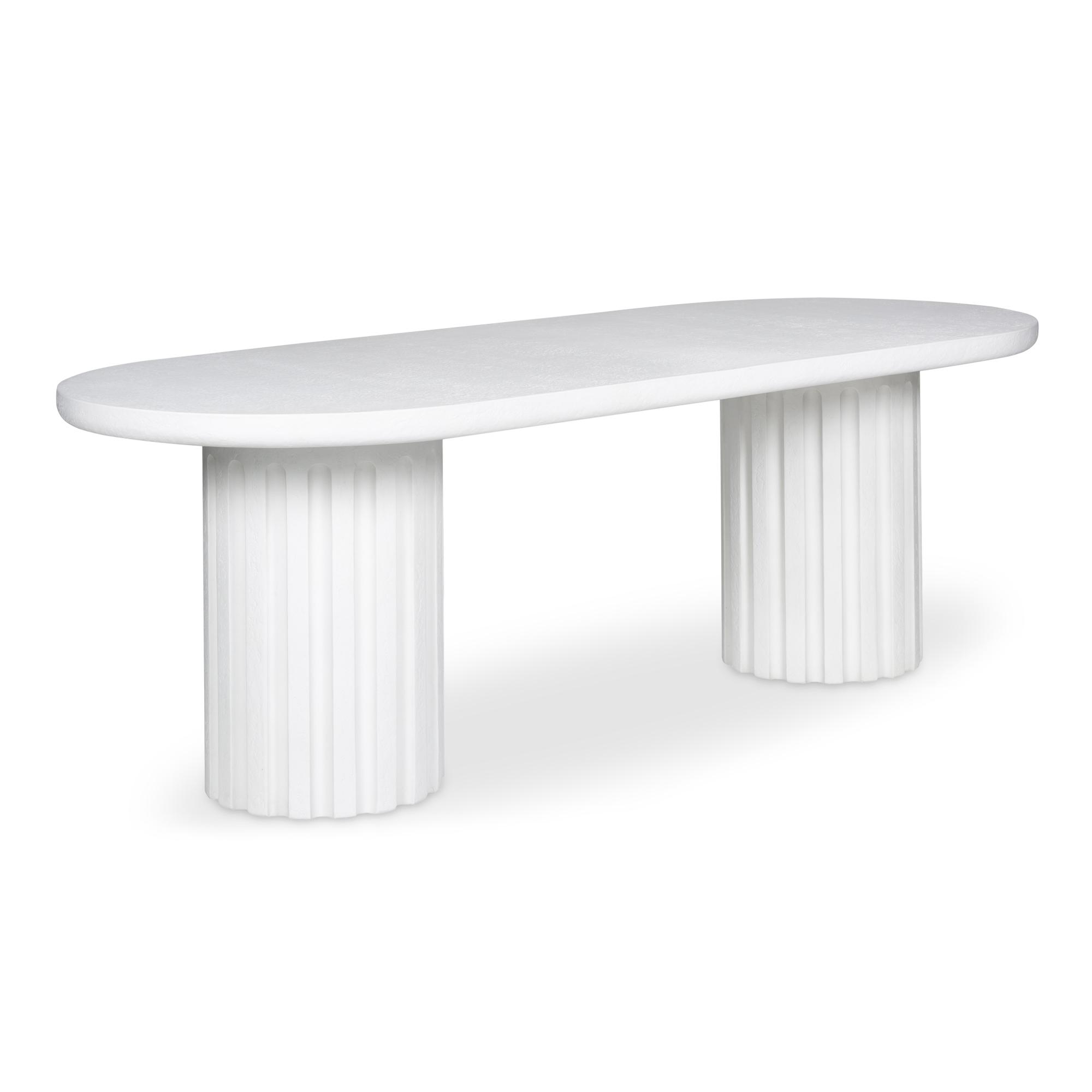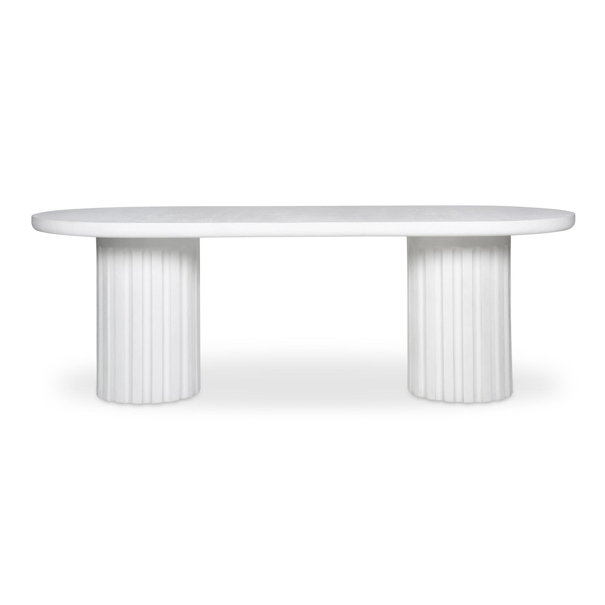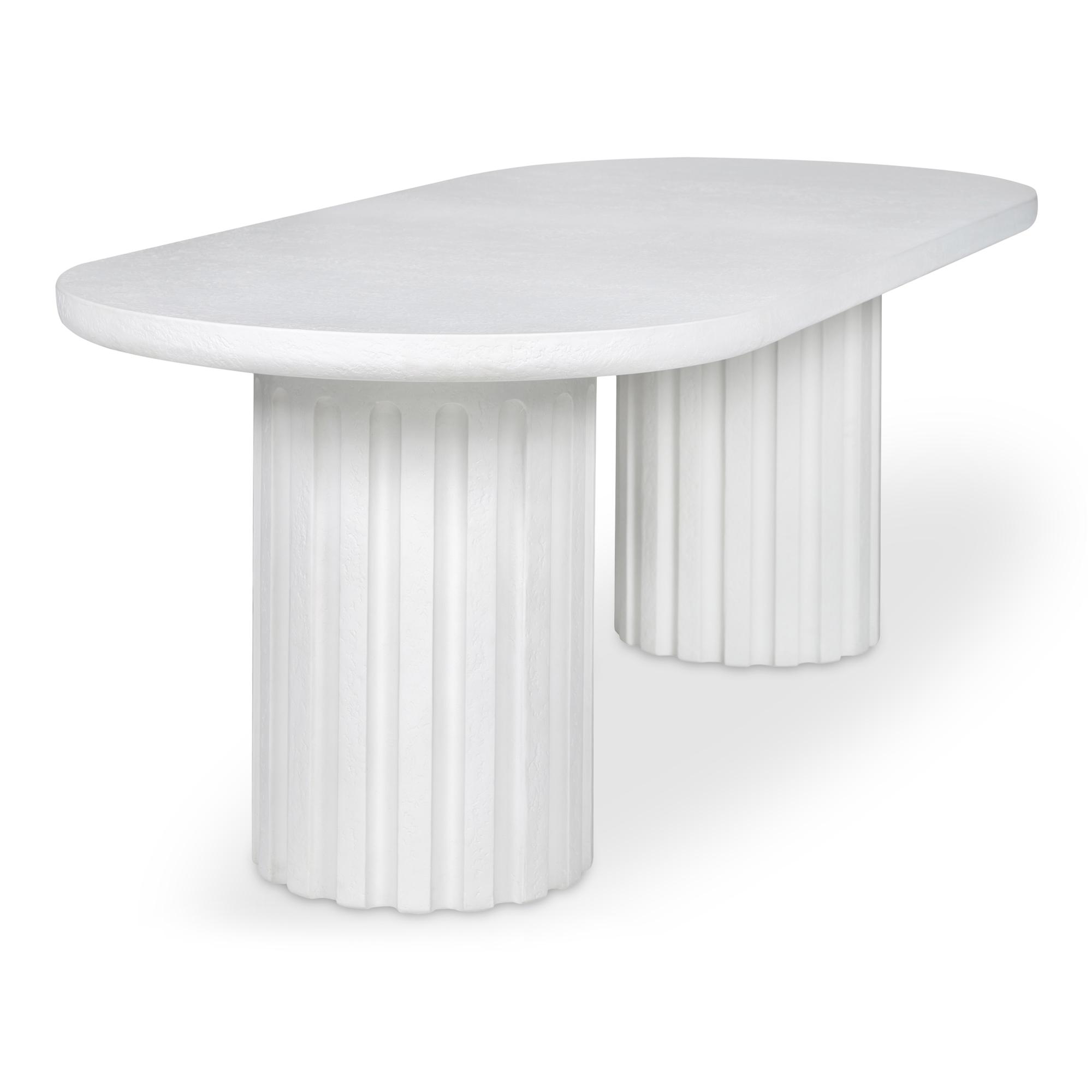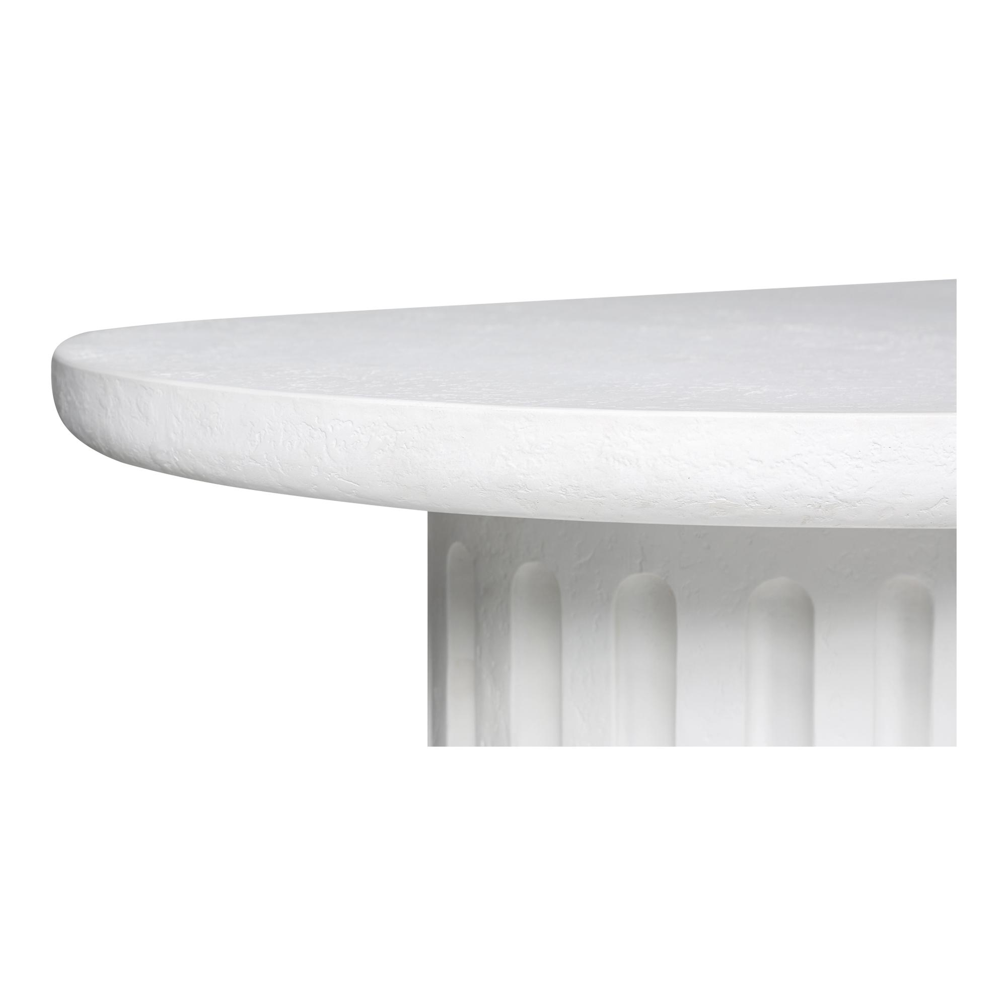 A striking interplay of shapes, the Eris outdoor dining table embraces round forms with a column-like fluted side. The rough concrete texture adds depth and complexity to an otherwise simplistic form, making it a statement piece suitable indoors and out. Exceptionally composed of Glass Fiber Reinforced Concrete (a fusion of cement, glass fiber, and Styrofoam), this table offers unique aesthetics while maintaining its beauty.