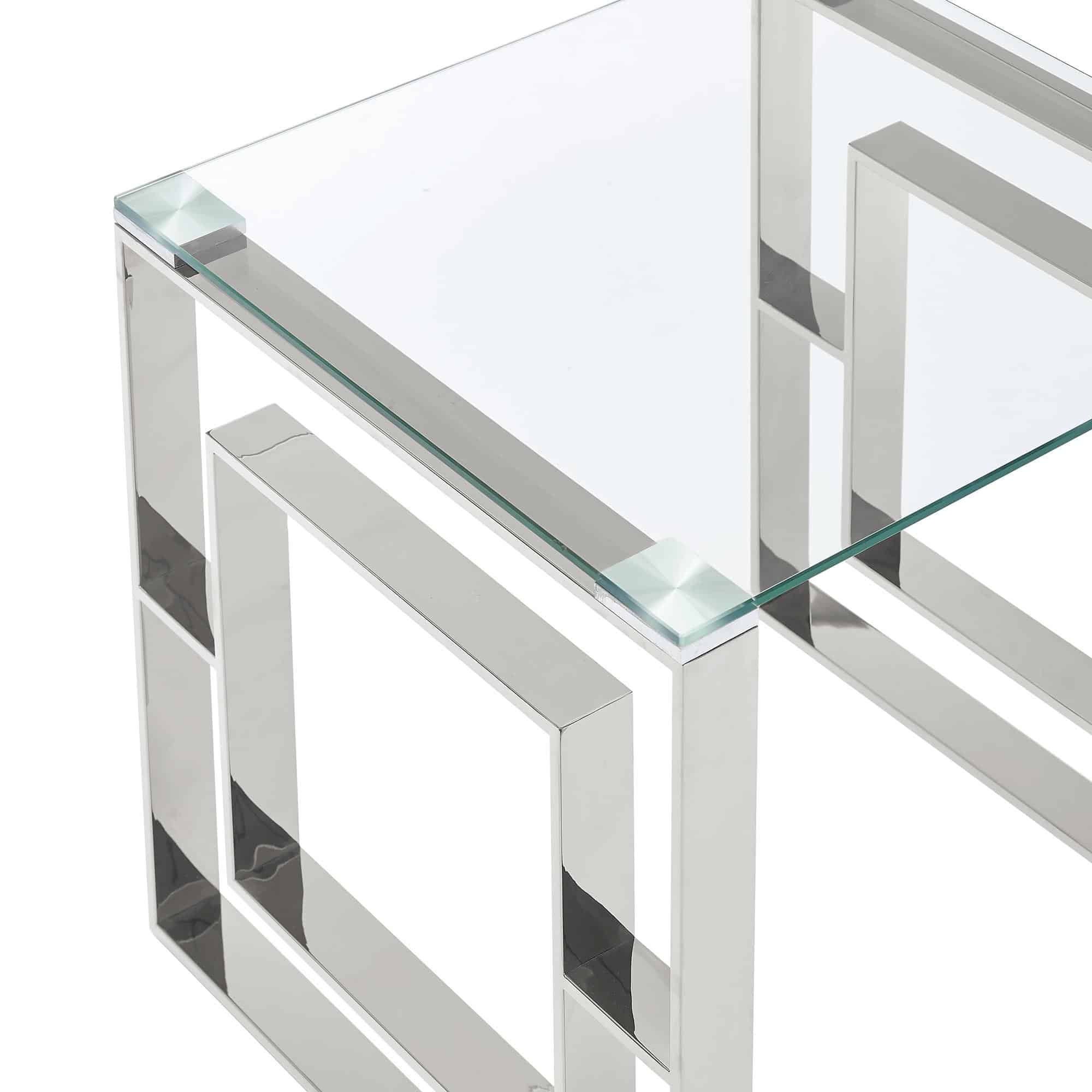 - Polished silver finish on stainless steel frame