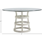 The Escape Dining Table creates a joyfully light focal point in spaces with a circular glass top supported by a unique, open-air base design in a smooth Sandbar finish. Glass top available in either 44” or 54”.