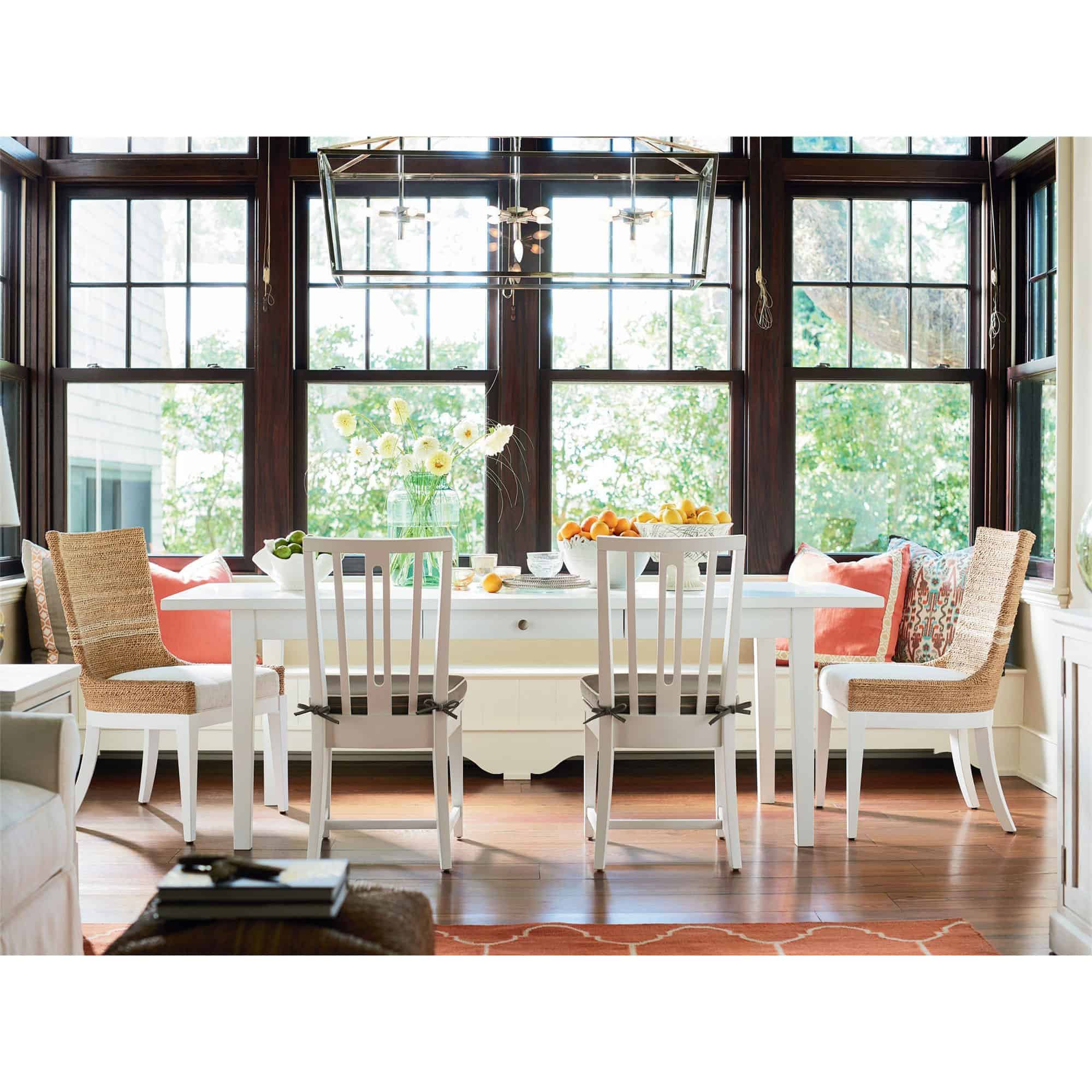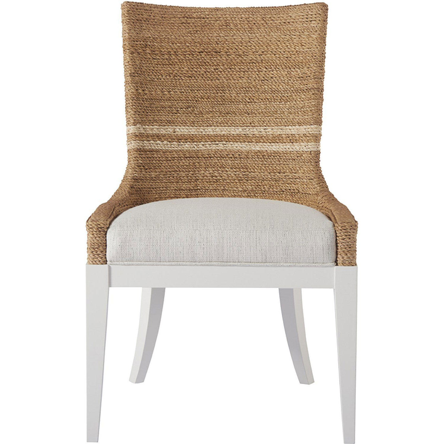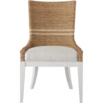 A gorgeous fusion of texture and tone, the Siesta Key Dining Chair is crafted with a woven abaca back and upholstered seat, and finished with chicly tapered legs in a white finish.