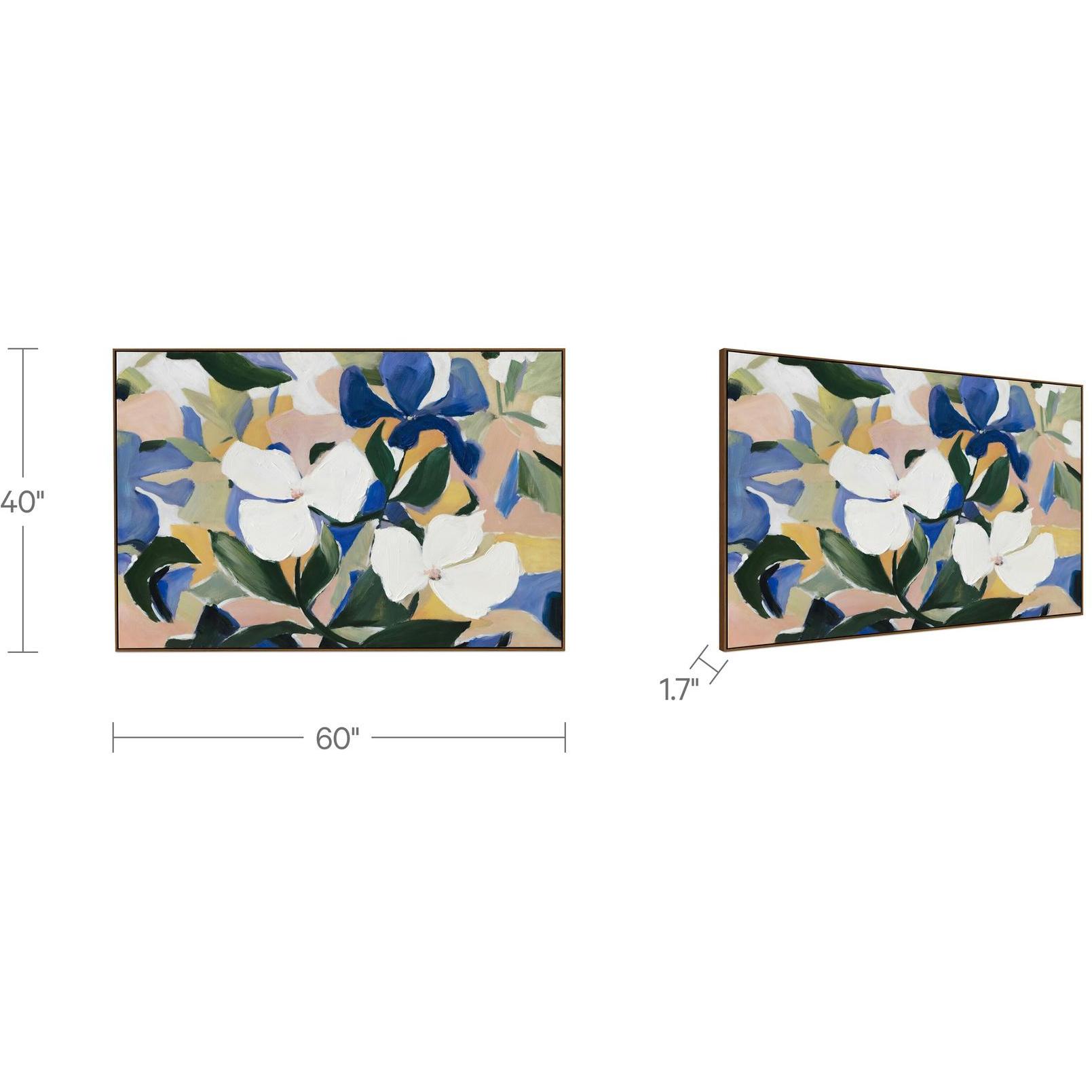 When petals meet pastel. Essence softens the floral story with airy brushwork, flowing shapes, and a palette that leans warm, light, and a little bit whimsical. Its abstract blooms shift across a pastel background in vibrant, organic motion that’s more emotion than still life. A solid wood frame adds natural grounding, keeping the whole piece feeling fresh and elevated. Bold yet gentle, it brings just enough bloom to brighten a space.