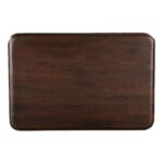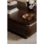The Eton coffee table is a study in contrasts, marrying bold geometry with gentle curves. Crafted from rich Acacia wood, the substantial top appears to float above a recessed base, creating visual intrigue. Each piece showcases unique grain patterns through its thoughtful design and natural beauty as its dark brown finish matures the overall look.