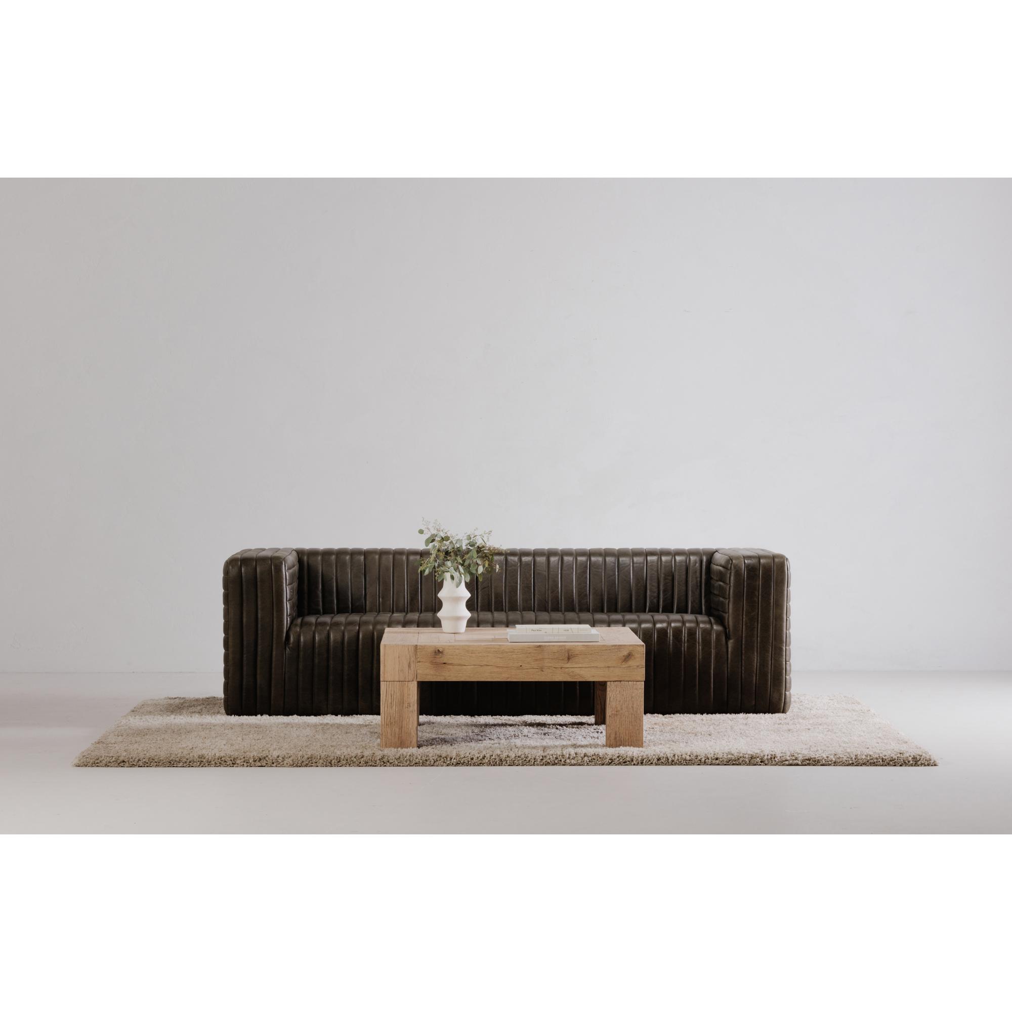 A stunning embodiment of organic vitality and contemporary design. Expertly crafted from solid reclaimed oak, the Evander coffee table showcases the wood’s natural grains and knots, creating a one-of-a-kind surface that exudes character and charm. Its modern, blocked construction simultaneously pays homage to the material’s inherent beauty and embraces a rustic aesthetic.