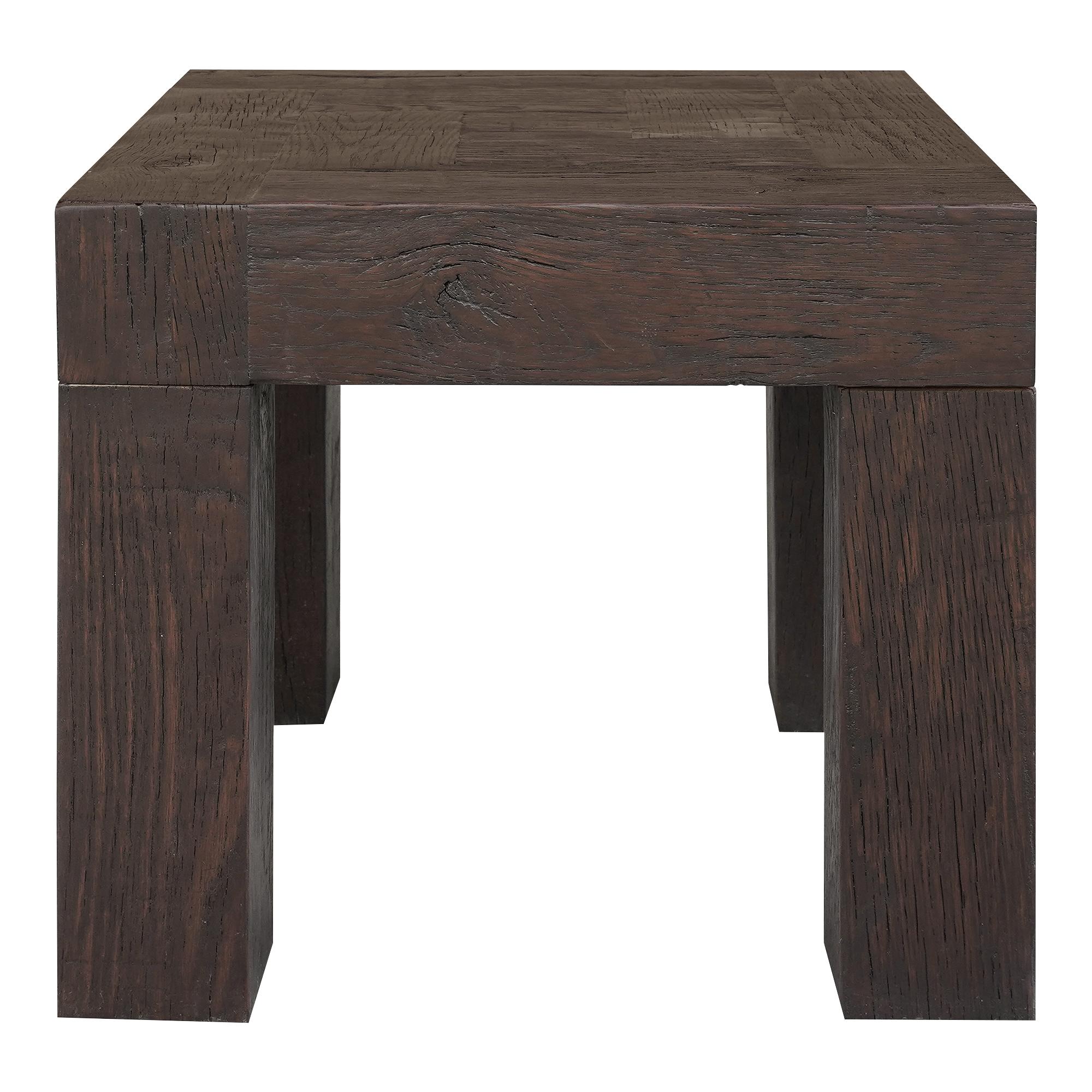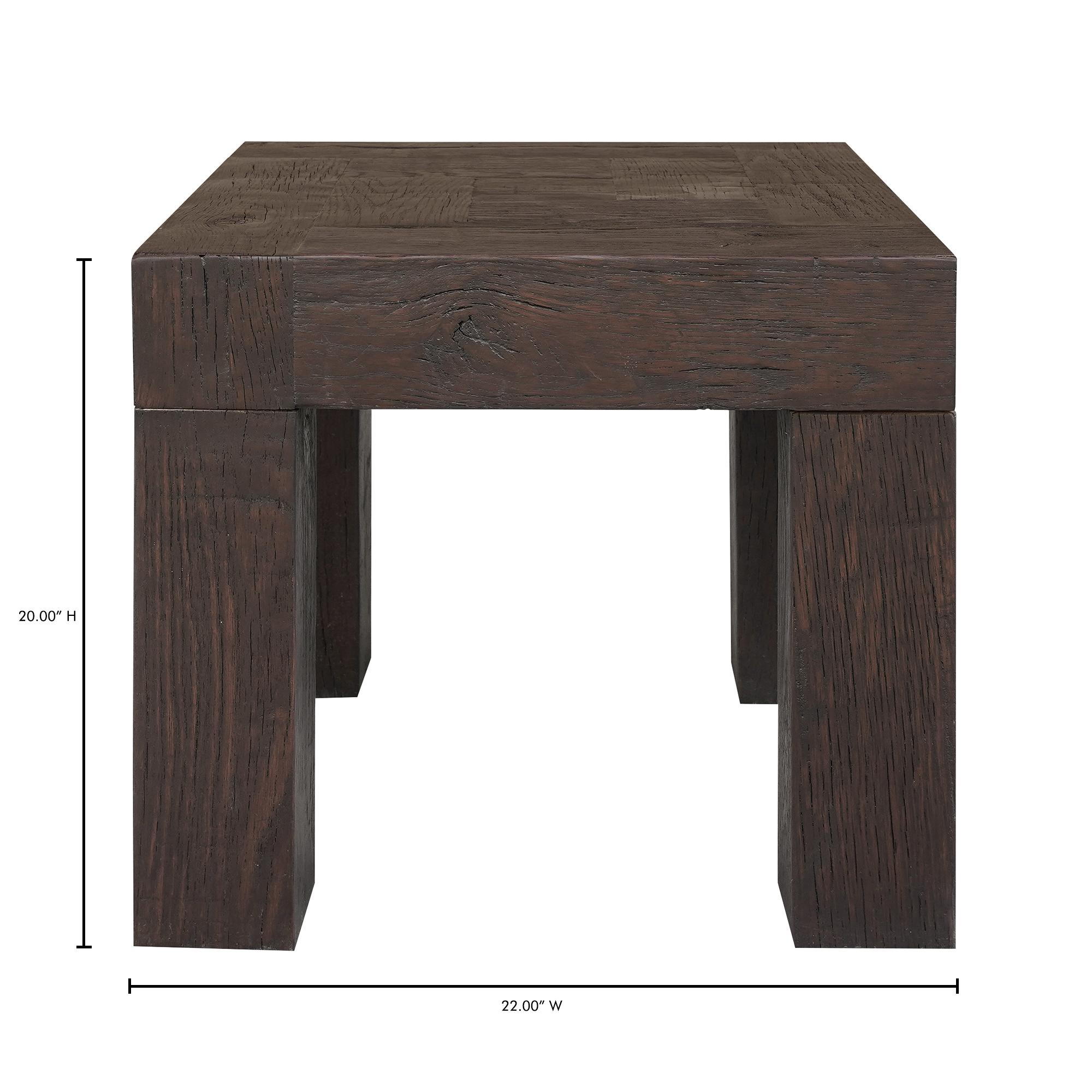 Hand-painted and crafted from solid reclaimed oak, beautiful natural grains, knots and imperfections take center stage with the Evander side table. Its modern, blocked construction balances rustic and contemporary design with organic energy, adding character and warmth.
