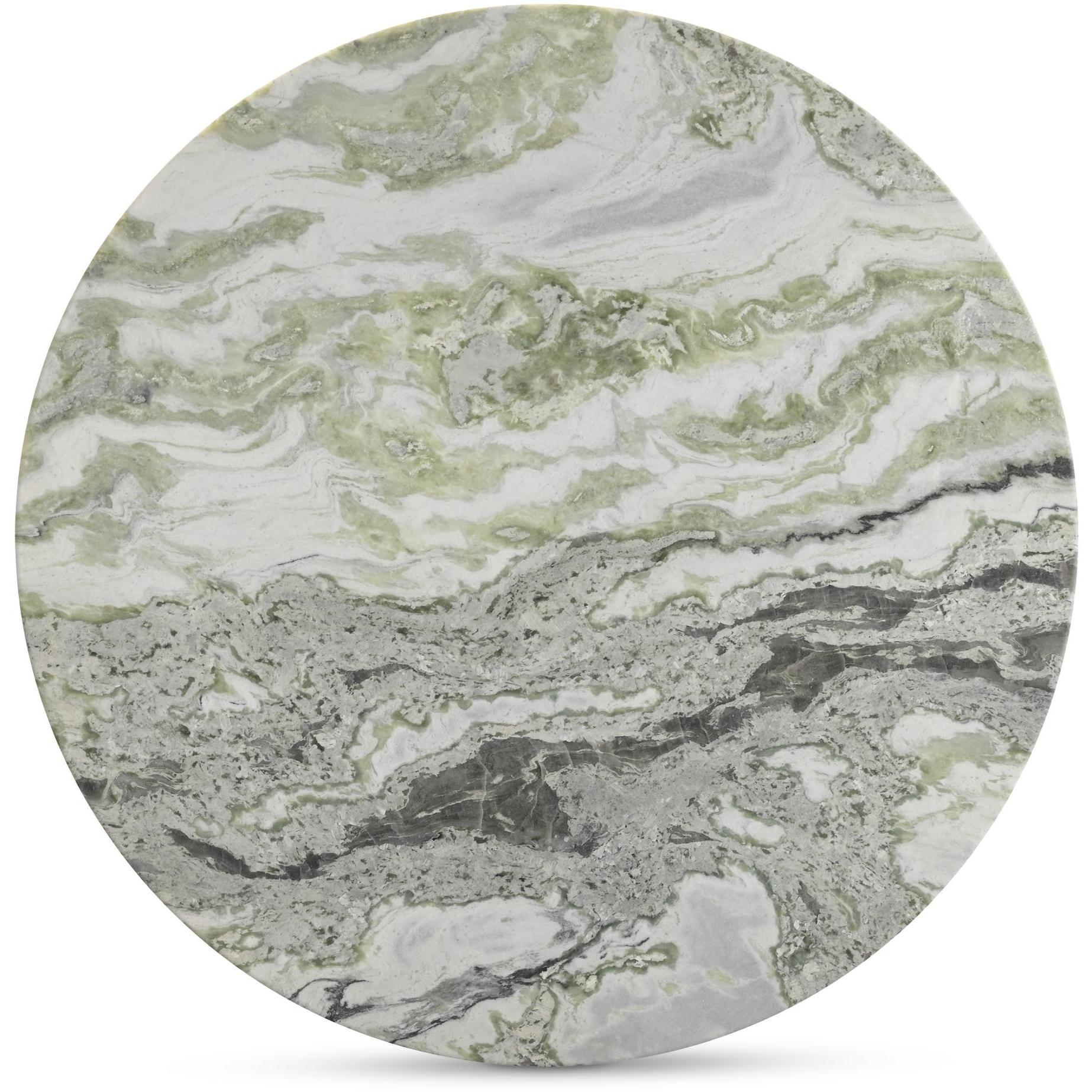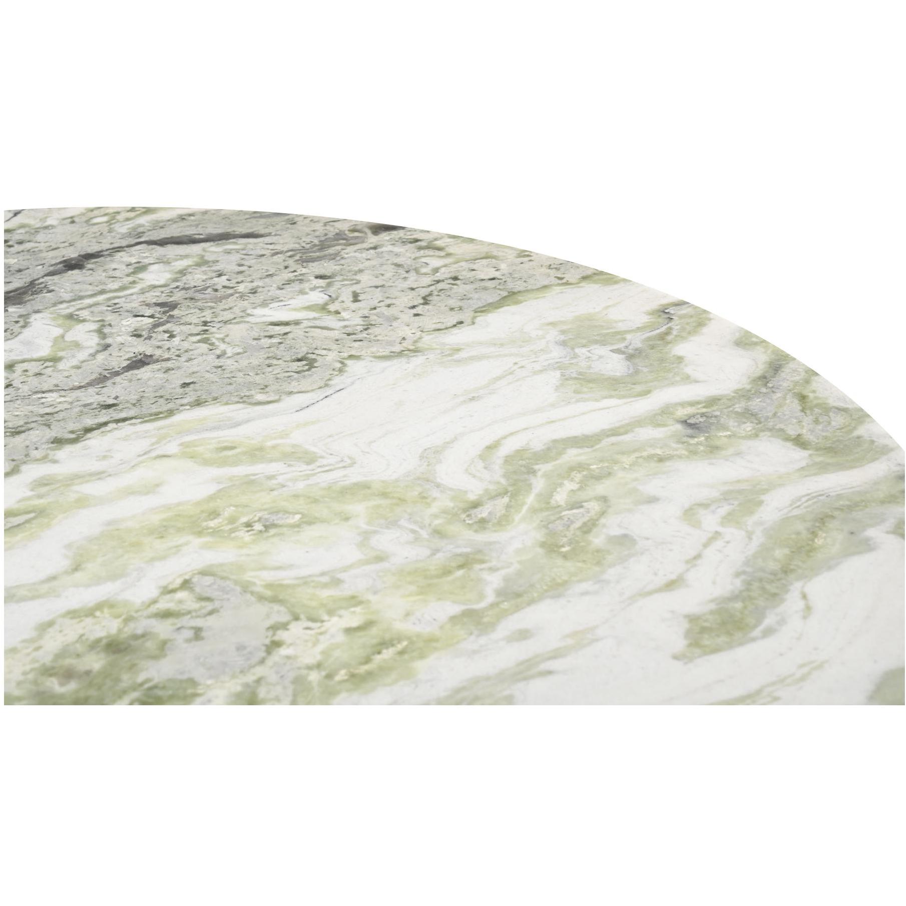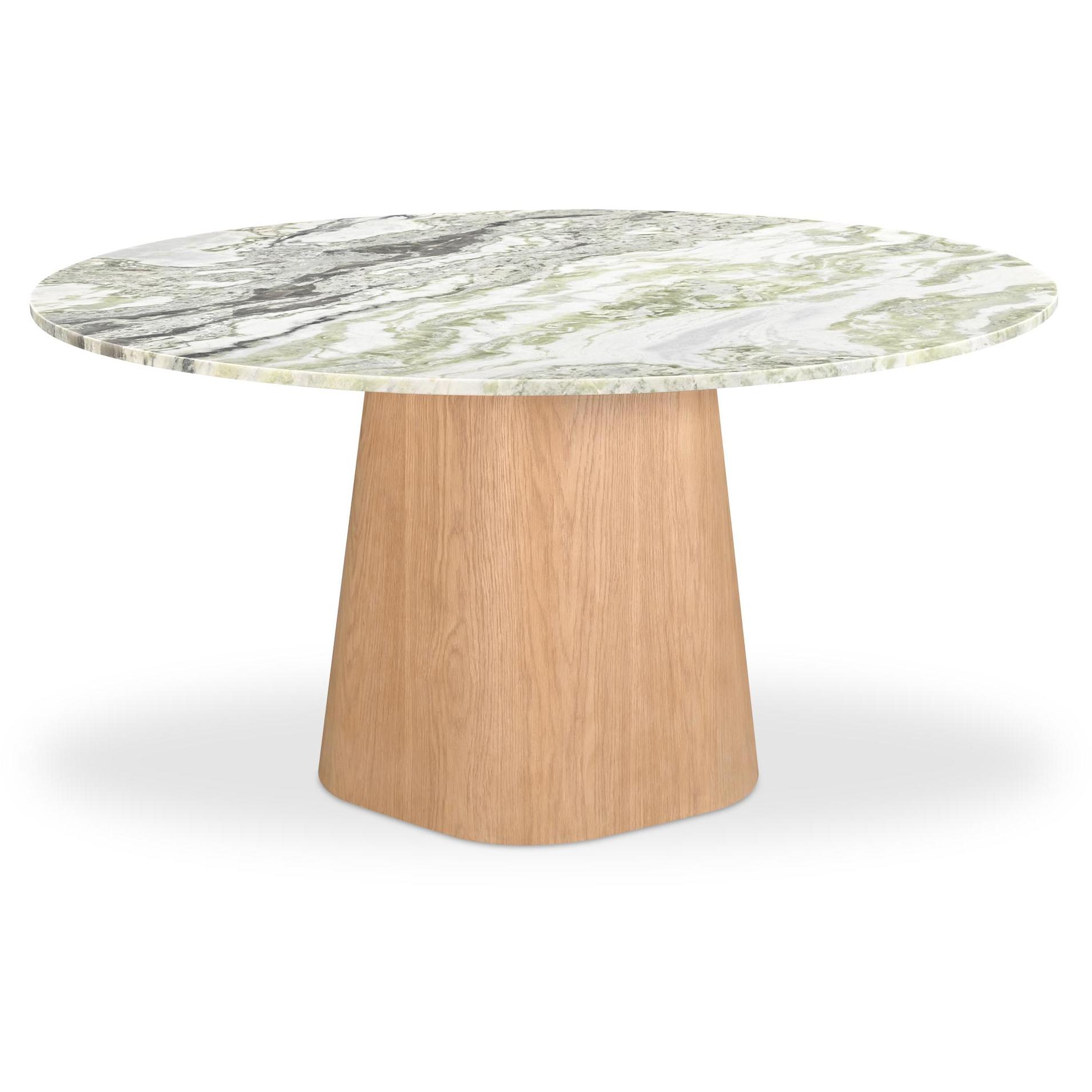 The Evelyn dining table is a harmonious contrast of materiality and tactility, where a weighty base meets a green onyx marble top. With five connected sides equipped with softened, rounded edges, the base assumes an organic appearance, its natural color subtly softening the marble top for enduring visual appeal.