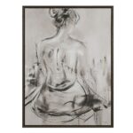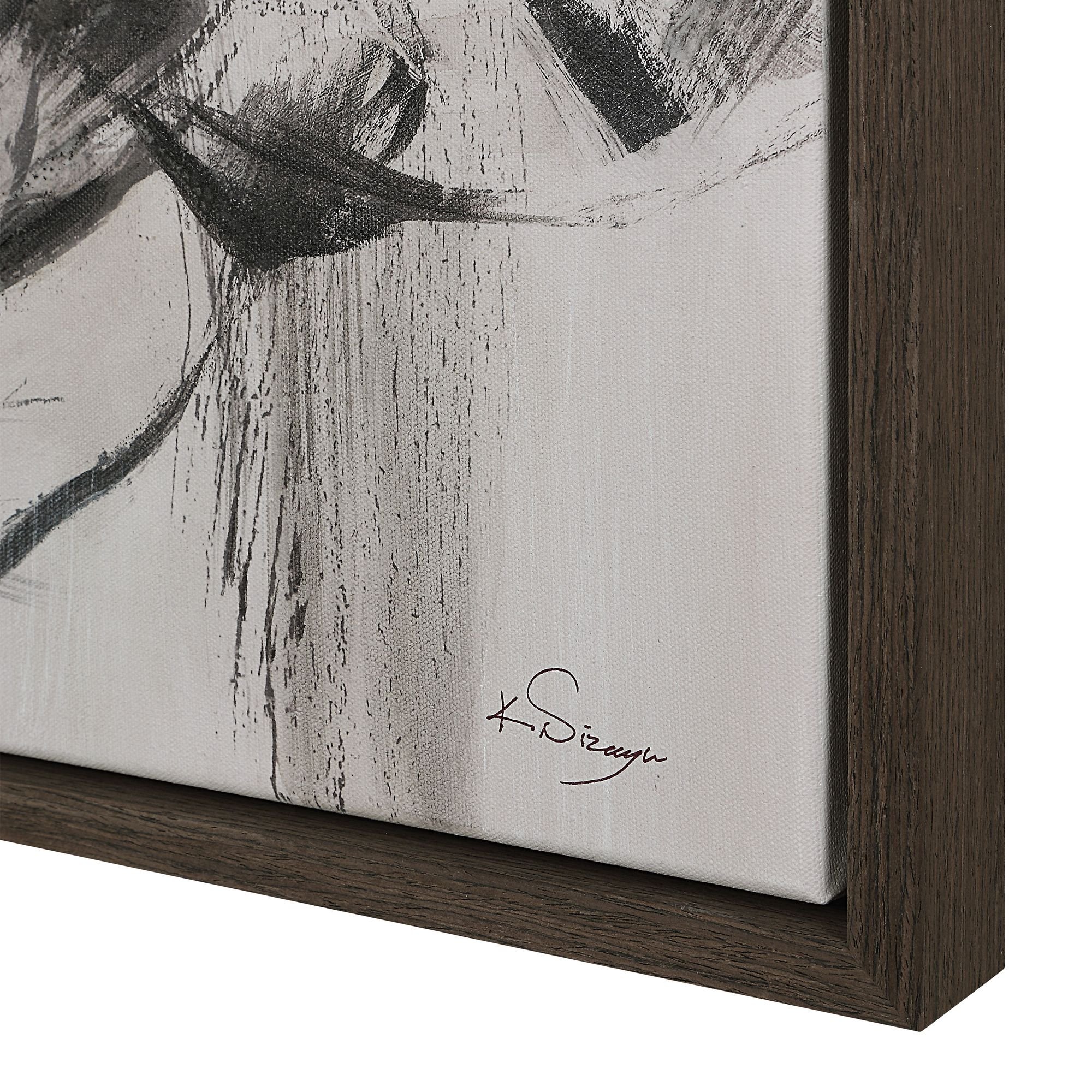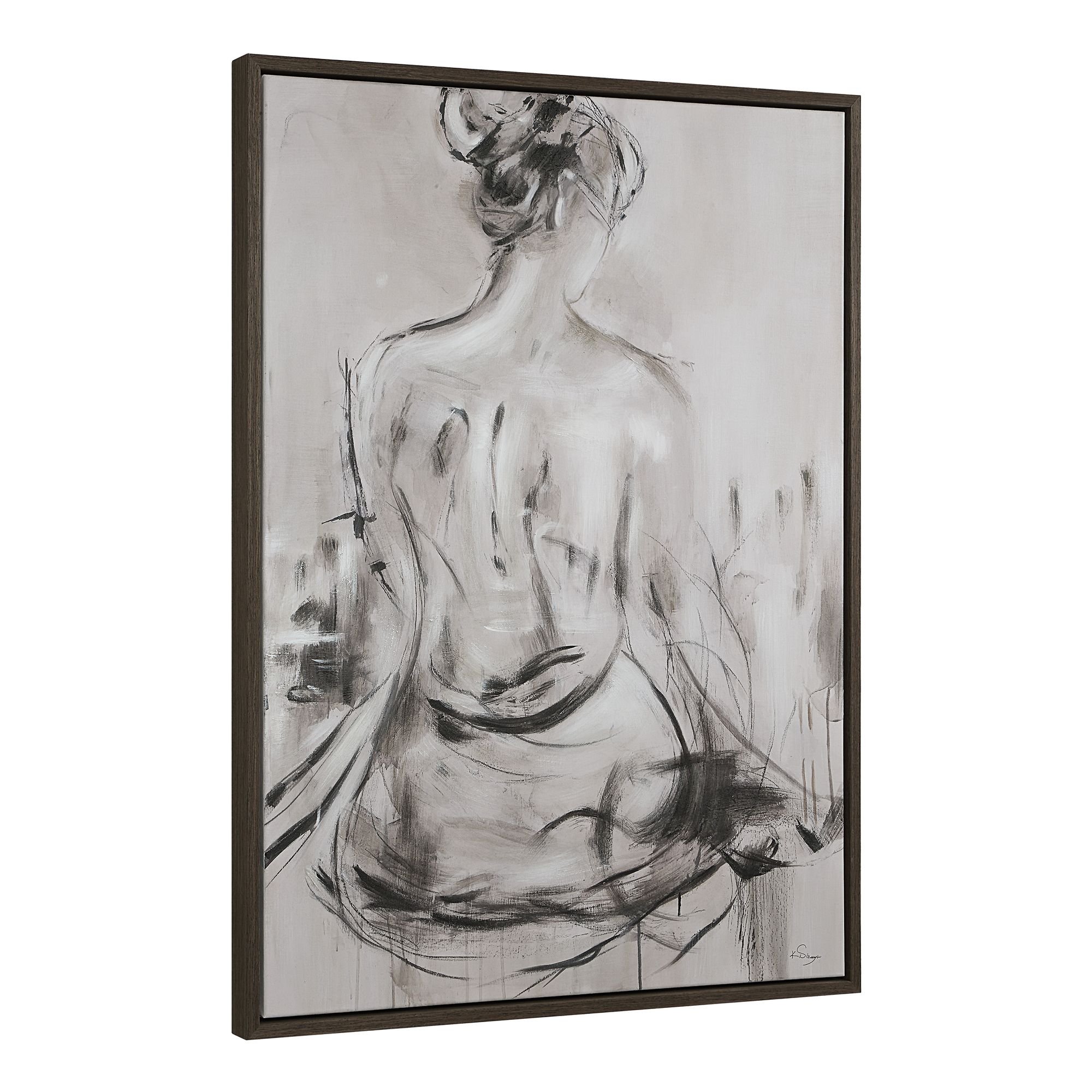 Add a romantic touch to any interior with this hand-painted canvas art. Its leading lady is a vision in free-form brushstrokes that come together to tell a sophisticated story. Mounted with a floating effect inside a beautiful dark brown frame, this abstract portrait will ground your transitional or contemporary space in style.