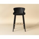 A gorgeous barstool that features a sleek and minimal profile. Stylishly designed with tone-on-tone colours, this chair is stocked in bravo black faux leather and completed with metal upholstered legs.