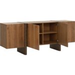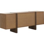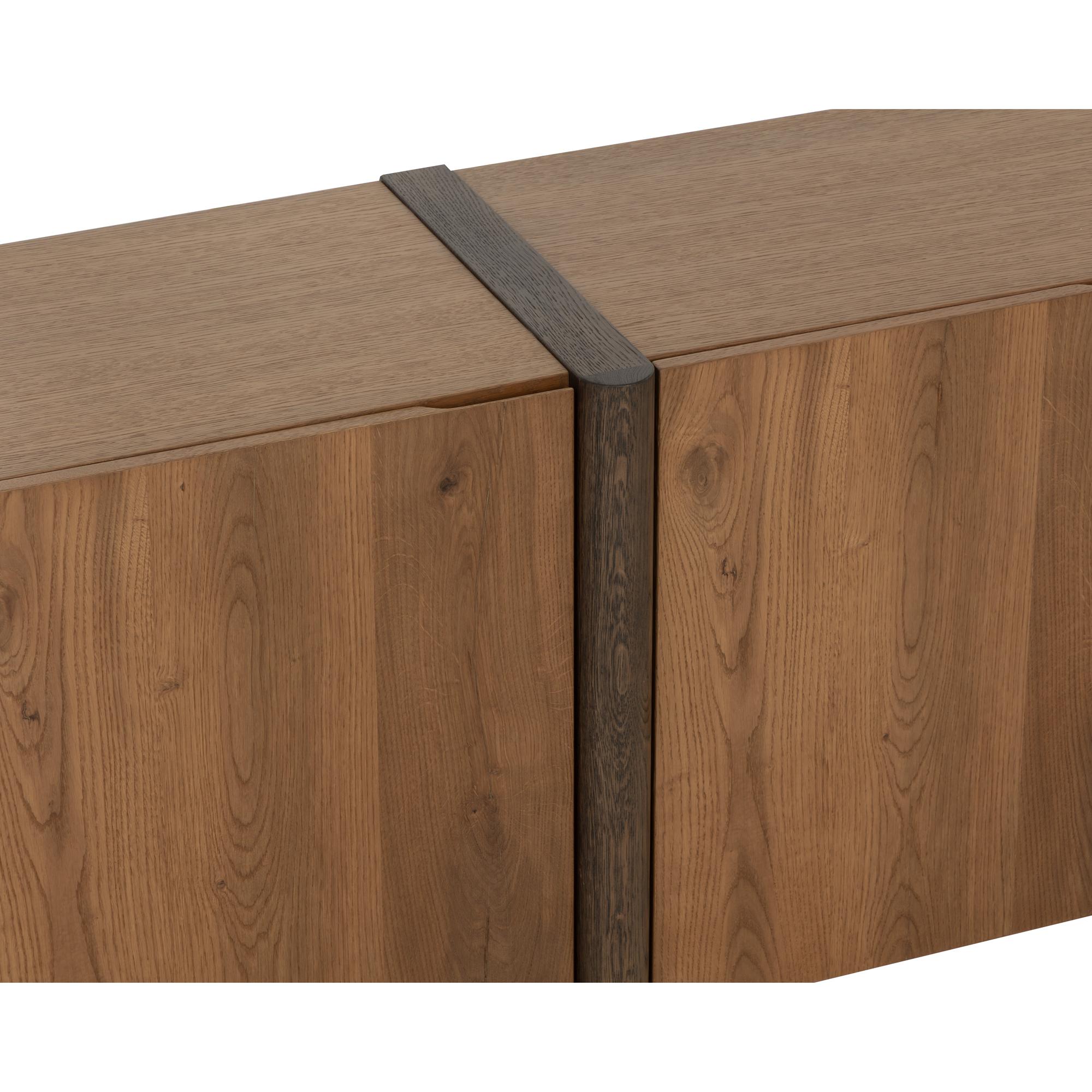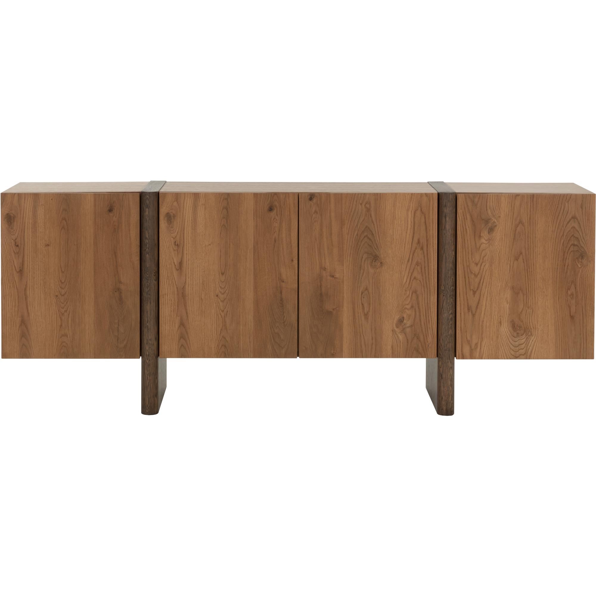 The two-toned beauty of warm oak and mocha oak finishes make the Ewan Sideboard a striking display of modern restraint. The rich graining and distinct knots of solid oak wood and wild oak veneer come together in a design that seamlessly blends organic beauty with functionality.