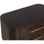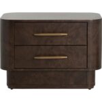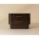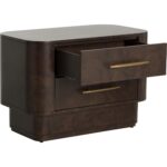 The Ezekiel Nightstand celebrates form and function with a heightened sense of luxury. Maple burl veneer offers timeless beauty with its dynamic wood grain swirls and deep rich tones. Two soft-close drawers with brushed gold stainless steel handles provide convenient storage space.