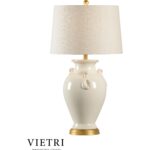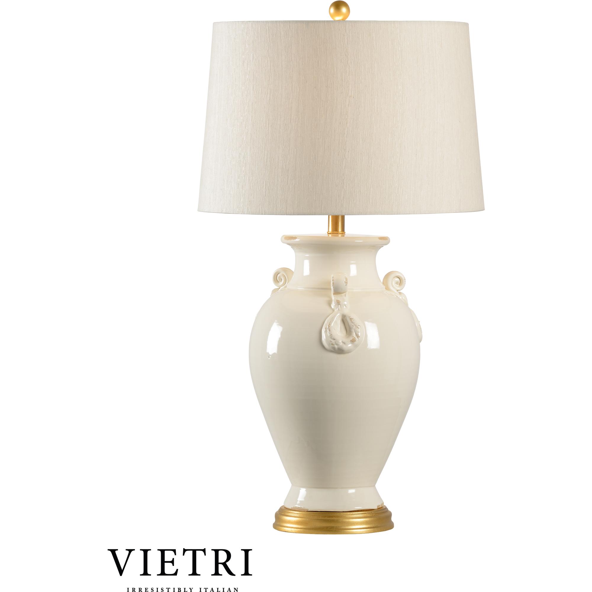 Hand sculpted Italian ceramic with an aged cream glaze and a gold leaf mounting. Designed by Vietri.