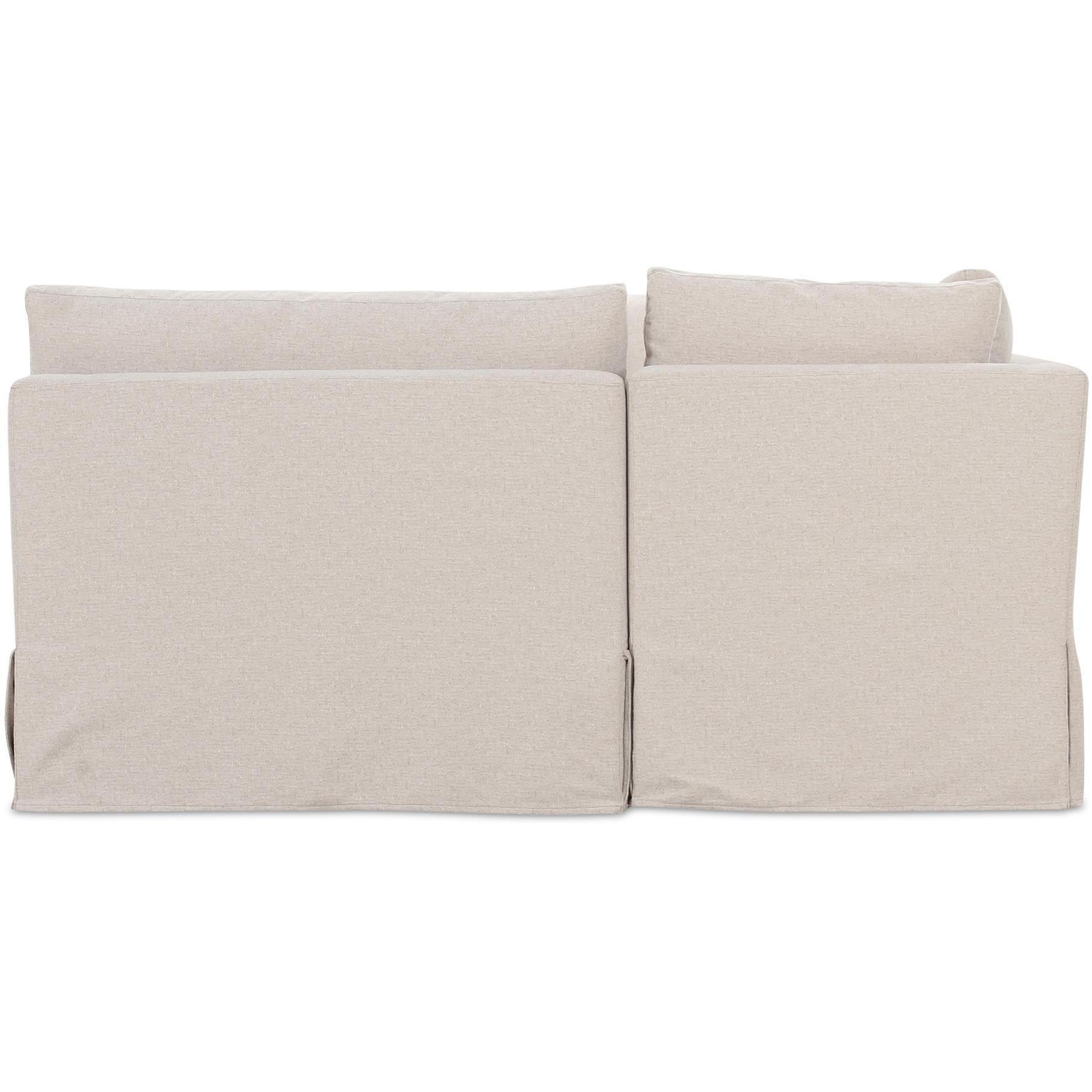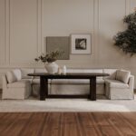 The Fable slipcover dining banquette U-shape’s snug-fitting, washable slipcover with inverted pleats offers a tidy appearance and effortless upkeep. A slight tilt encourages a relaxed seating posture with a pillow back and seat cushions for comfort. Designed to be modular, it includes alligator clips to connect with other pieces in the collection, adapting seamlessly to various dining table sizes.