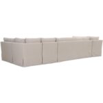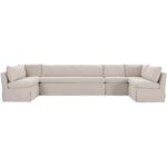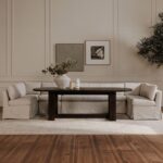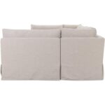 The Fable slipcover dining banquette U-shape’s snug-fitting, washable slipcover with inverted pleats offers a tidy appearance and effortless upkeep. A slight tilt encourages a relaxed seating posture with a pillow back and seat cushions for comfort. Designed to be modular, it includes alligator clips to connect with other pieces in the collection, adapting seamlessly to various dining table sizes.