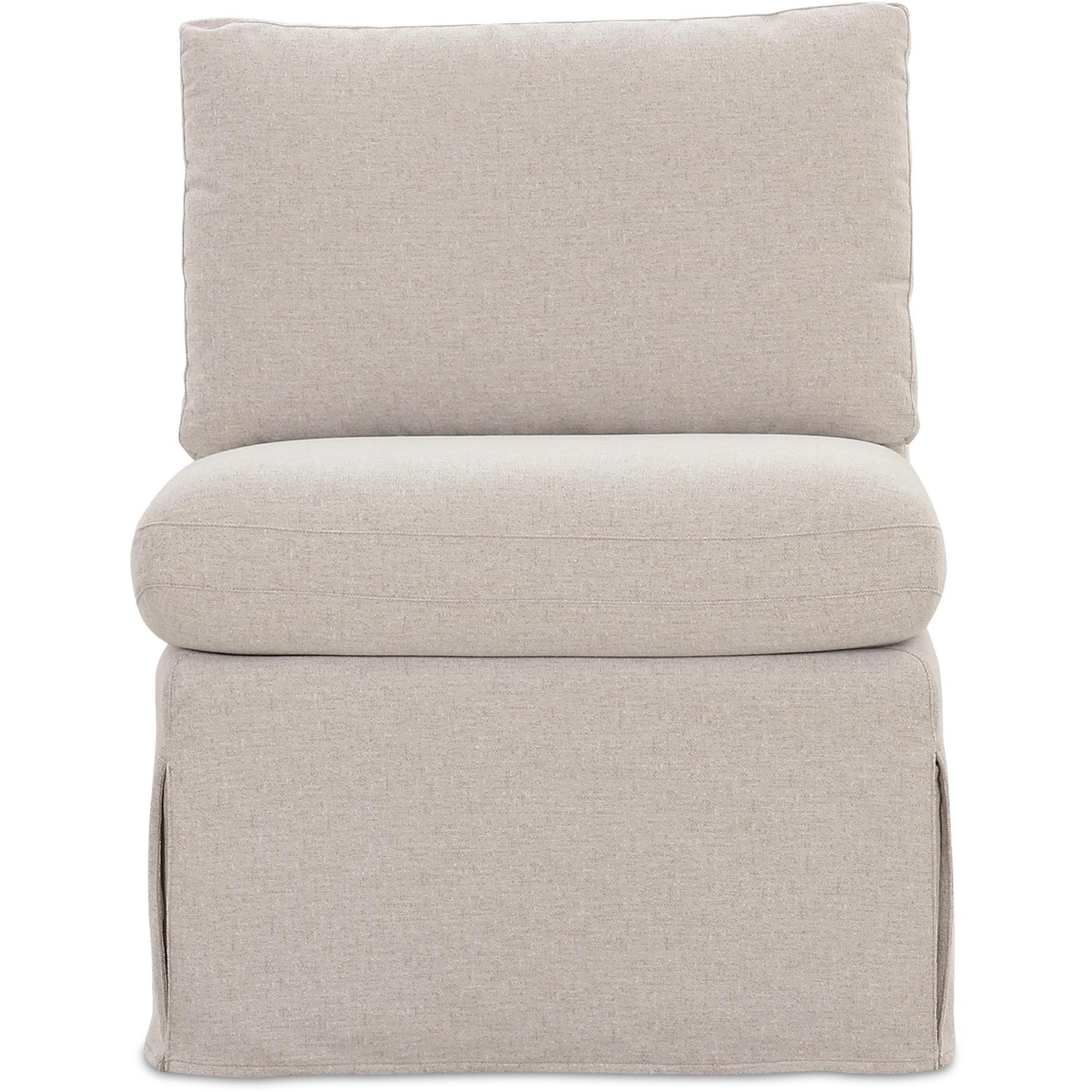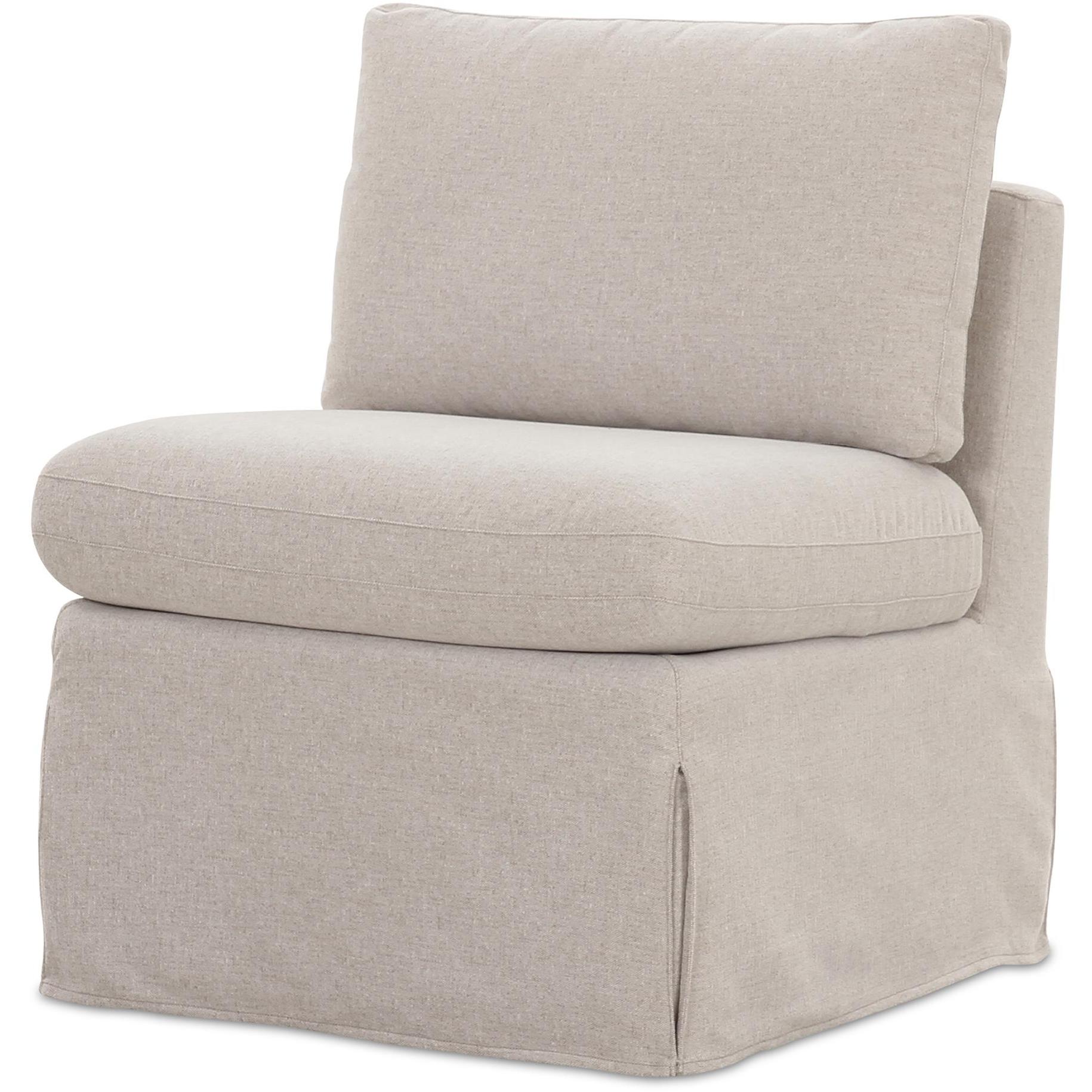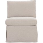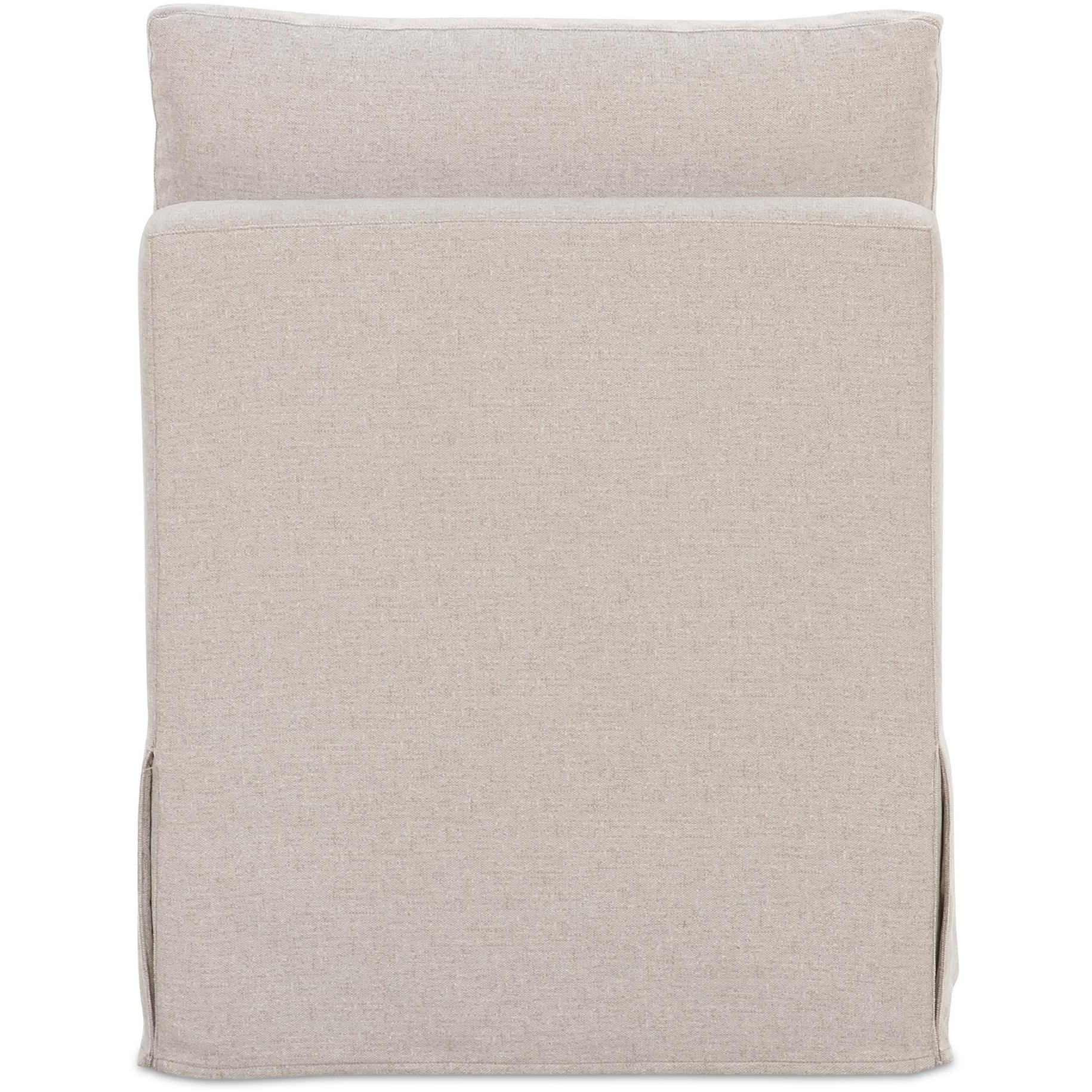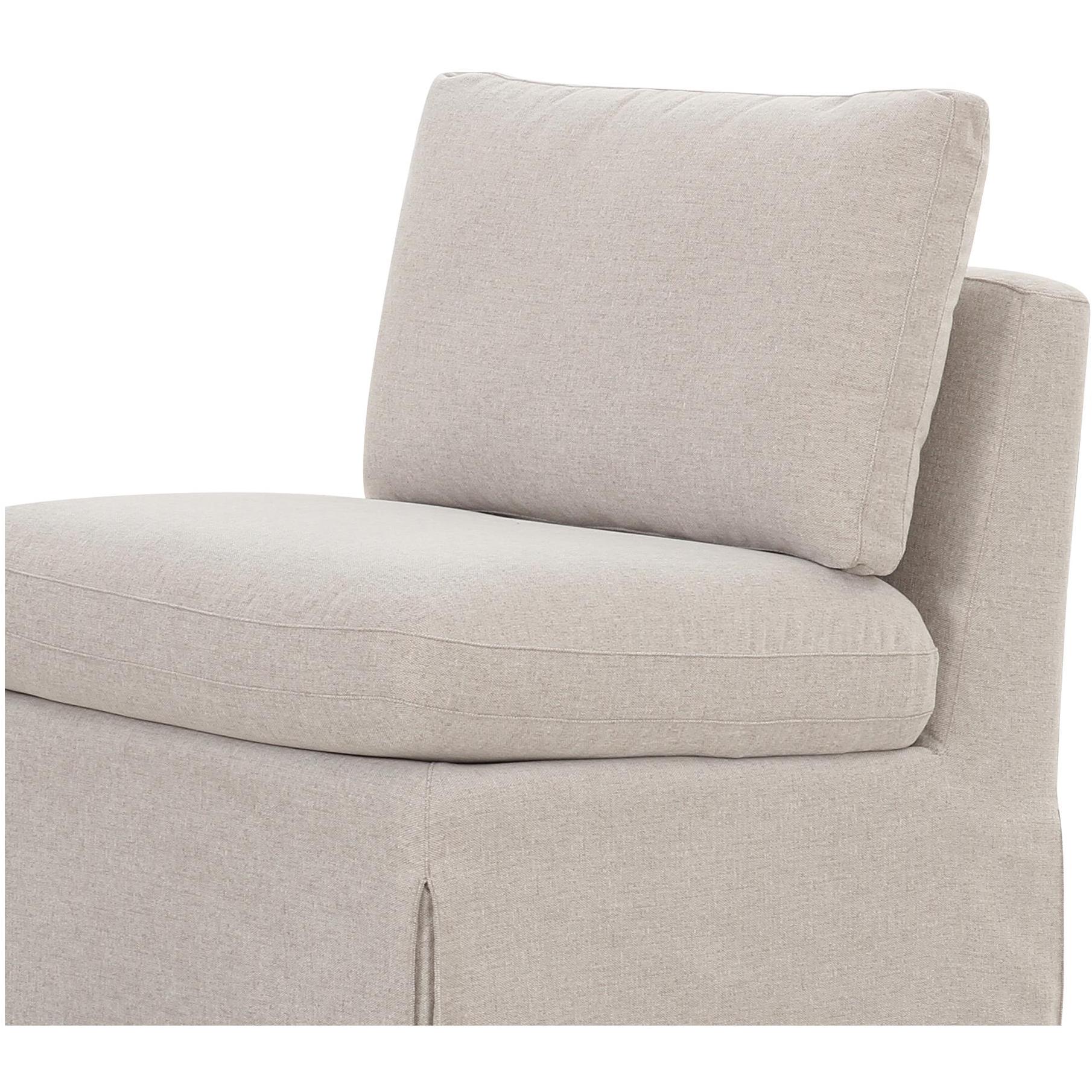 The Fable slipcover dining slipper chair’s snug-fitting, washable slipcover with inverted pleats offers a tidy appearance and effortless upkeep. A slight tilt encourages a relaxed seating posture with a pillow back and seat cushions for comfort. Designed to be modular, it includes alligator clips to connect with other pieces in the collection, adapting seamlessly to various dining table sizes.