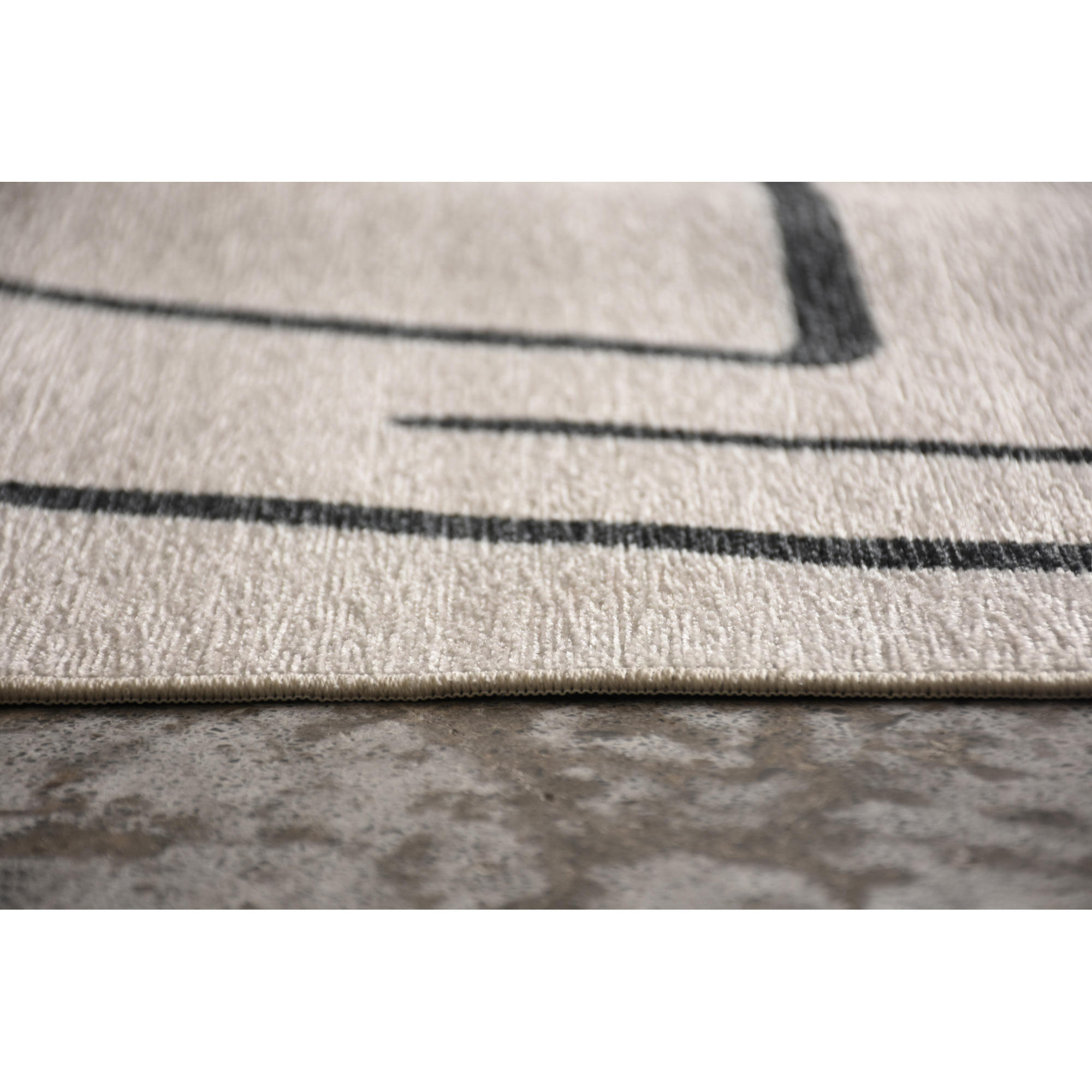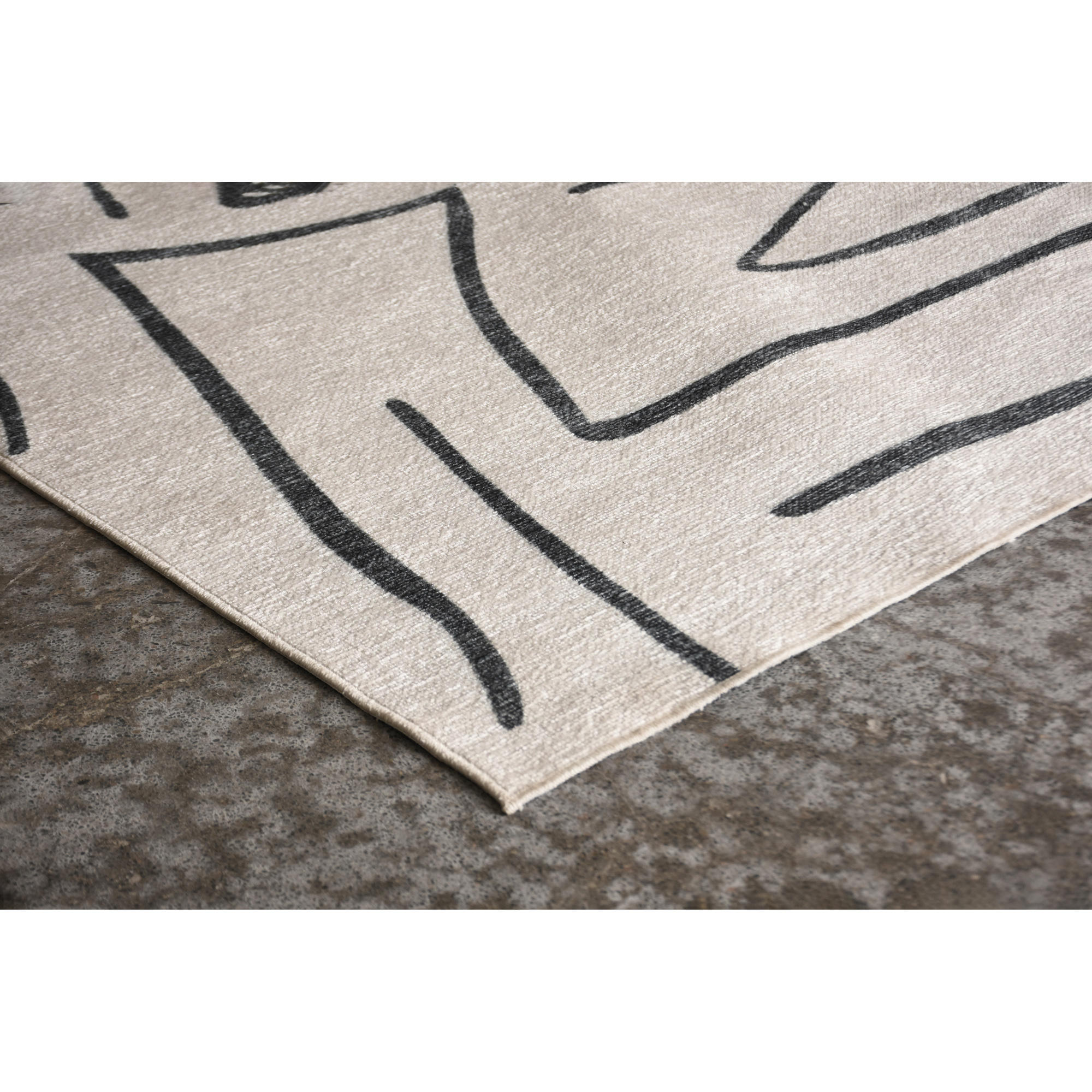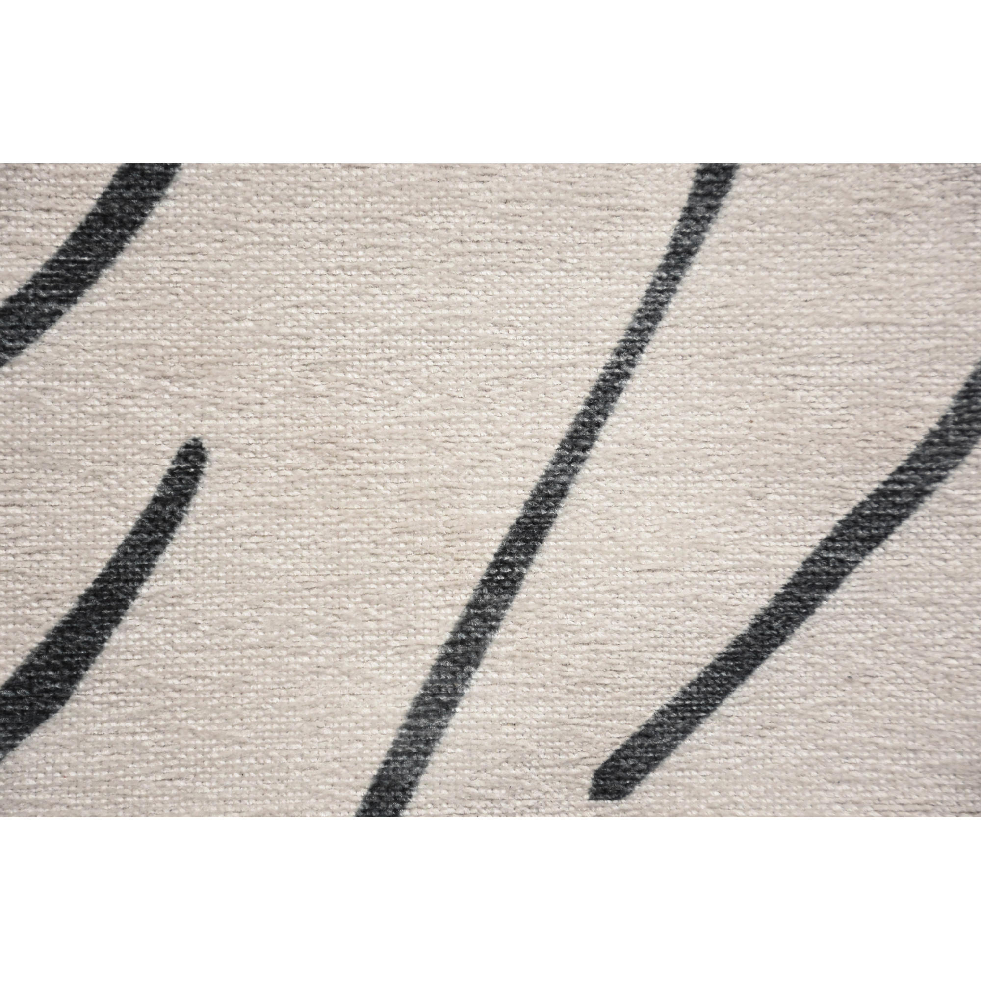 Minimalism and tribal-like inspiration come together to create this unique rug design. No matter if the selection is large or small, this piece pops within the home. Featuring a beige base and black strokes, its contrasting tones enhance its designer quality.