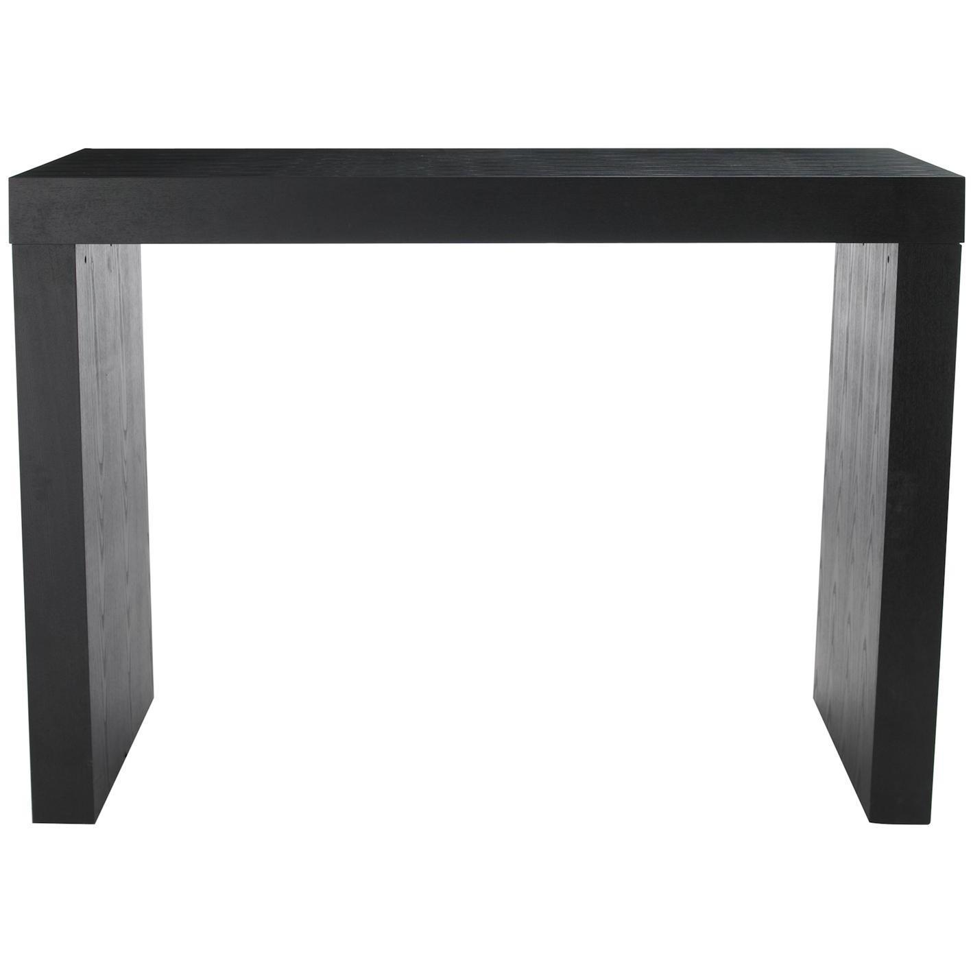 Distinctly urban bar height table with room for two stools on each side. Made of solid ash and ash veneer in a matte black finish.