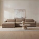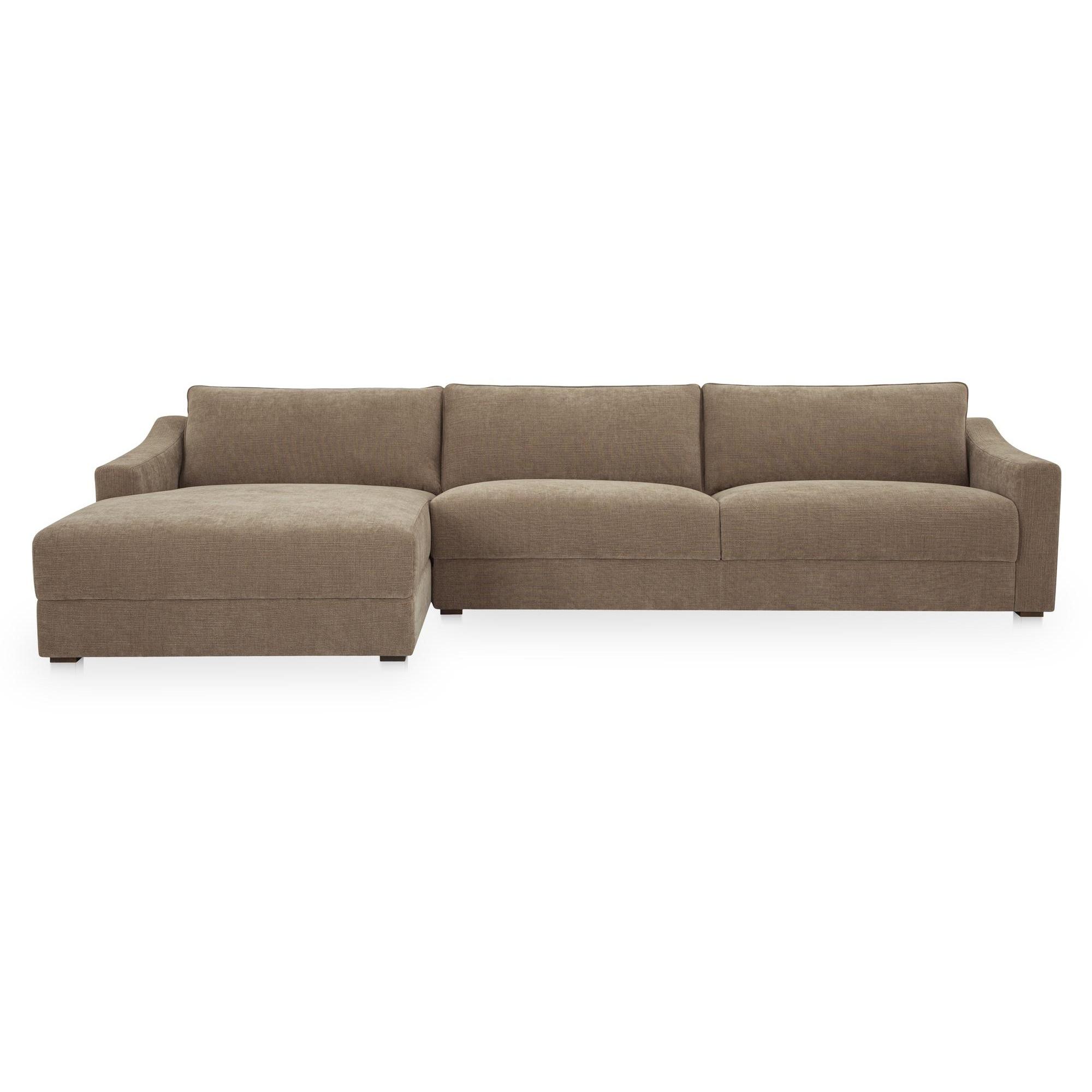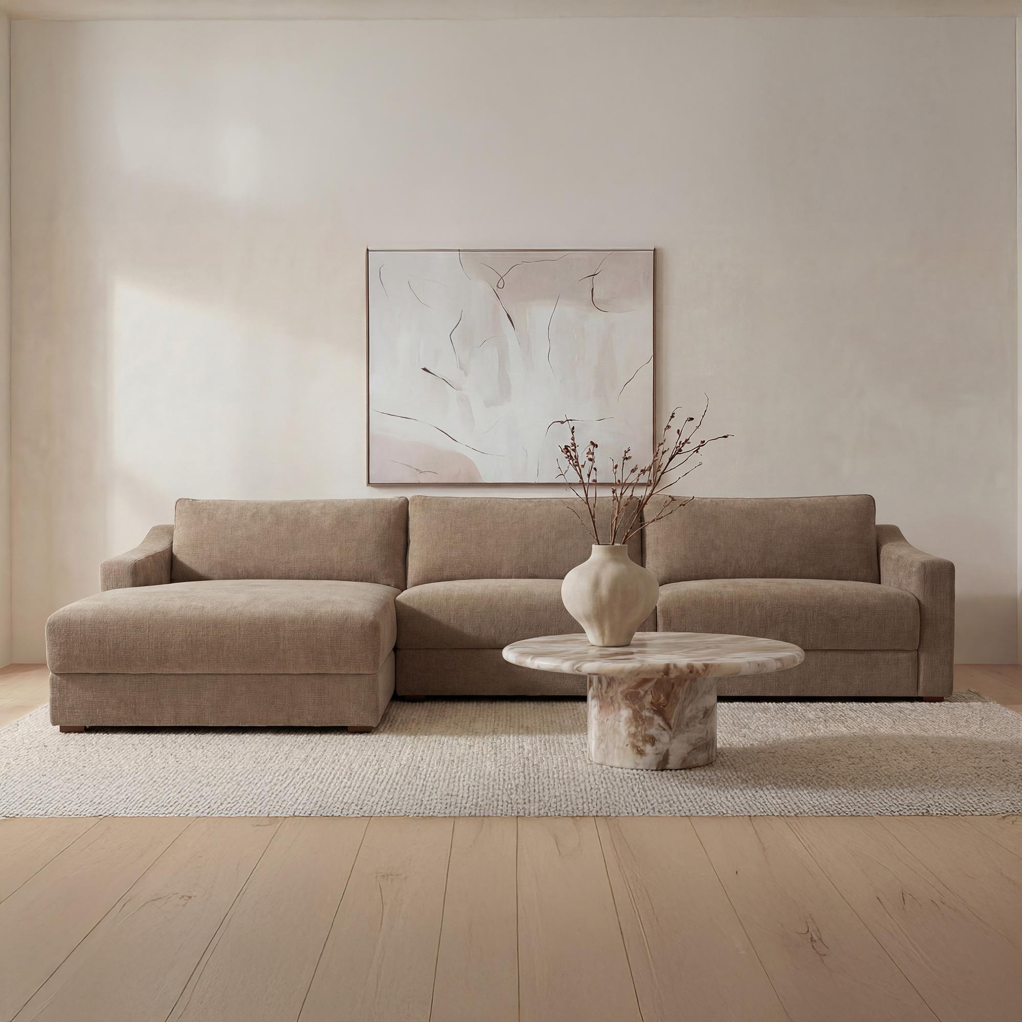 Understated design, oversized comfort. The Farrow Sectional pairs deep, fiber-filled cushions with sloped arms and piped edges for a tailored finish. Upholstered in taupe chenille with a soft, tactile hand, it’s fully wrapped and set on a hidden base for a seamless profile. Designed with the left-facing chaise, this sectional adapts effortlessly—equally at home in modern or traditional spaces.