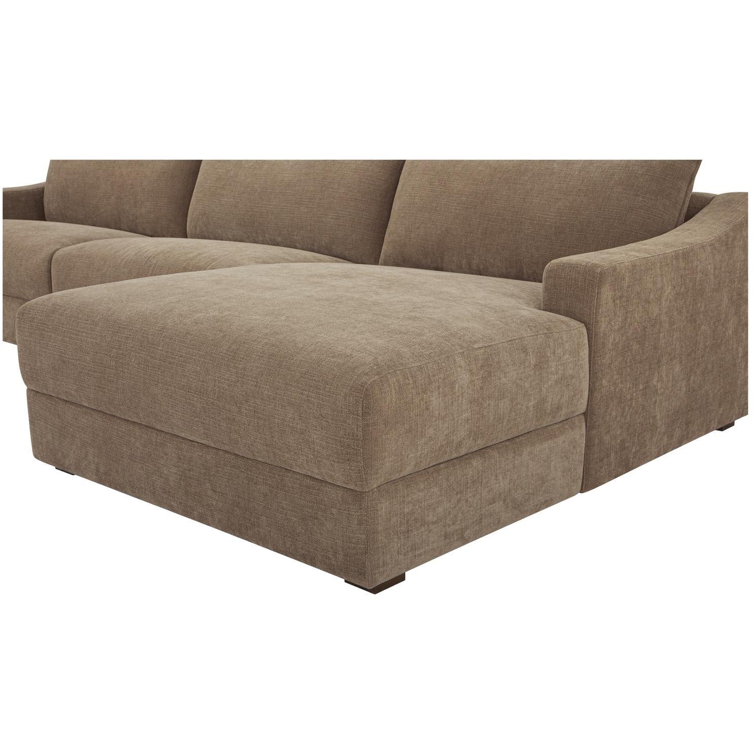 Understated design, oversized comfort. The Farrow Sectional pairs deep, fiber-filled cushions with sloped arms and piped edges for a tailored finish. Upholstered in taupe chenille with a soft, tactile hand, it’s fully wrapped and set on a hidden base for a seamless profile. Designed with the right-facing chaise, this sectional adapts effortlessly—equally at home in modern or traditional spaces.