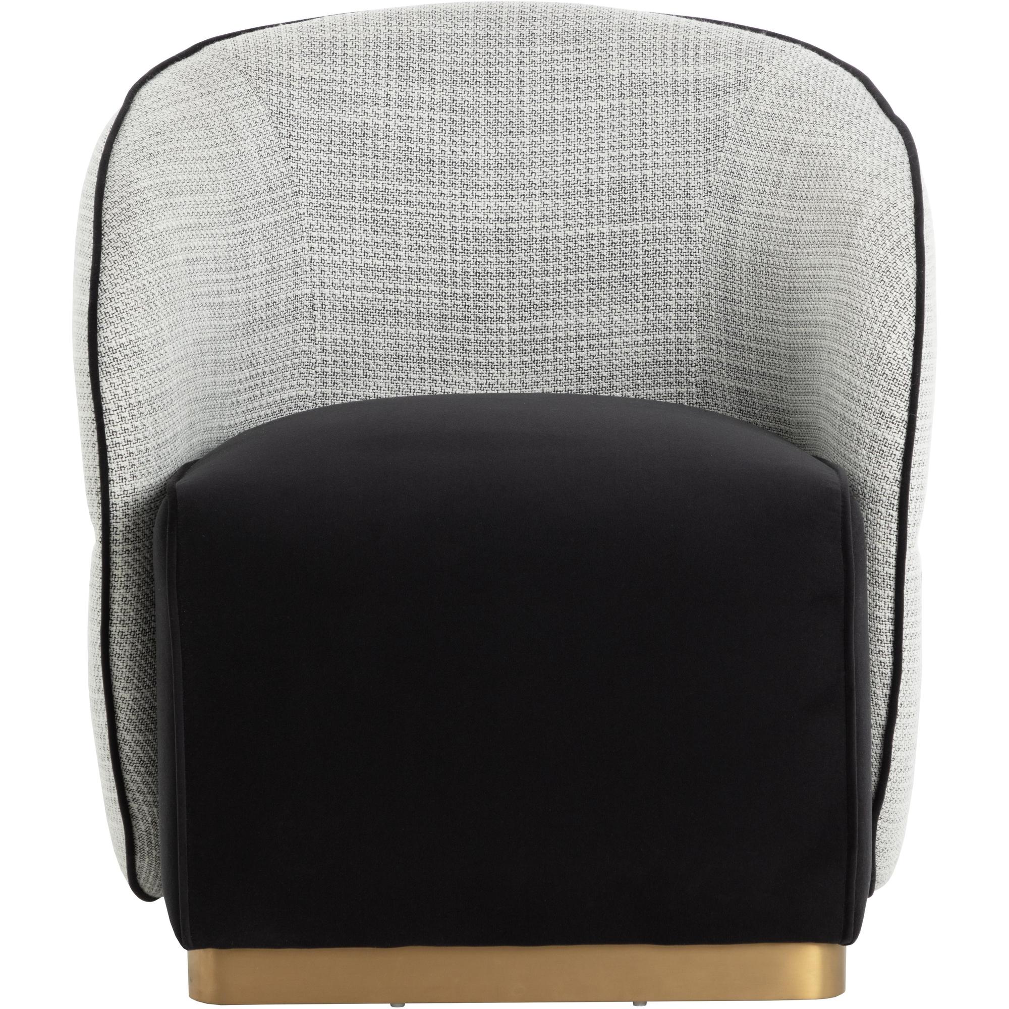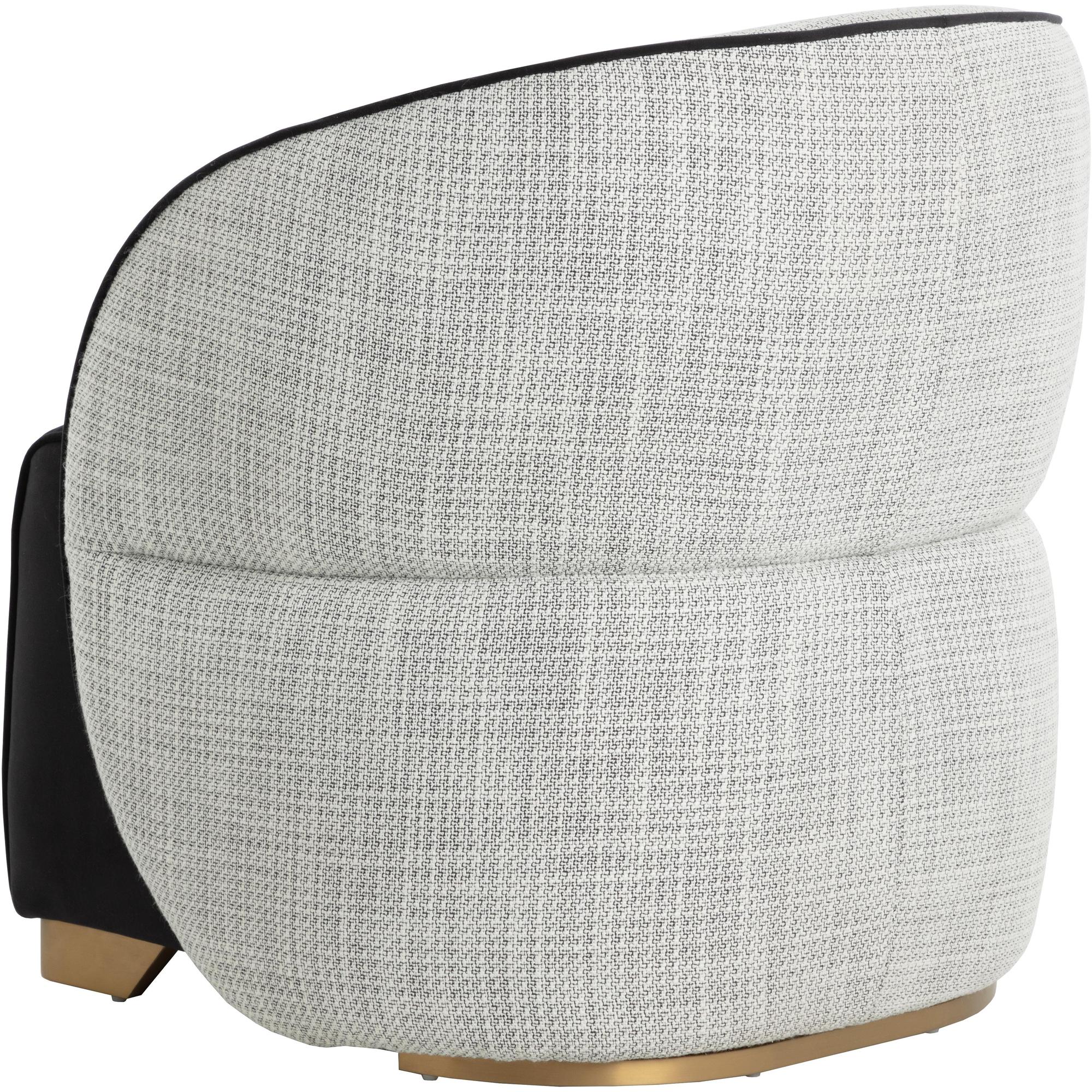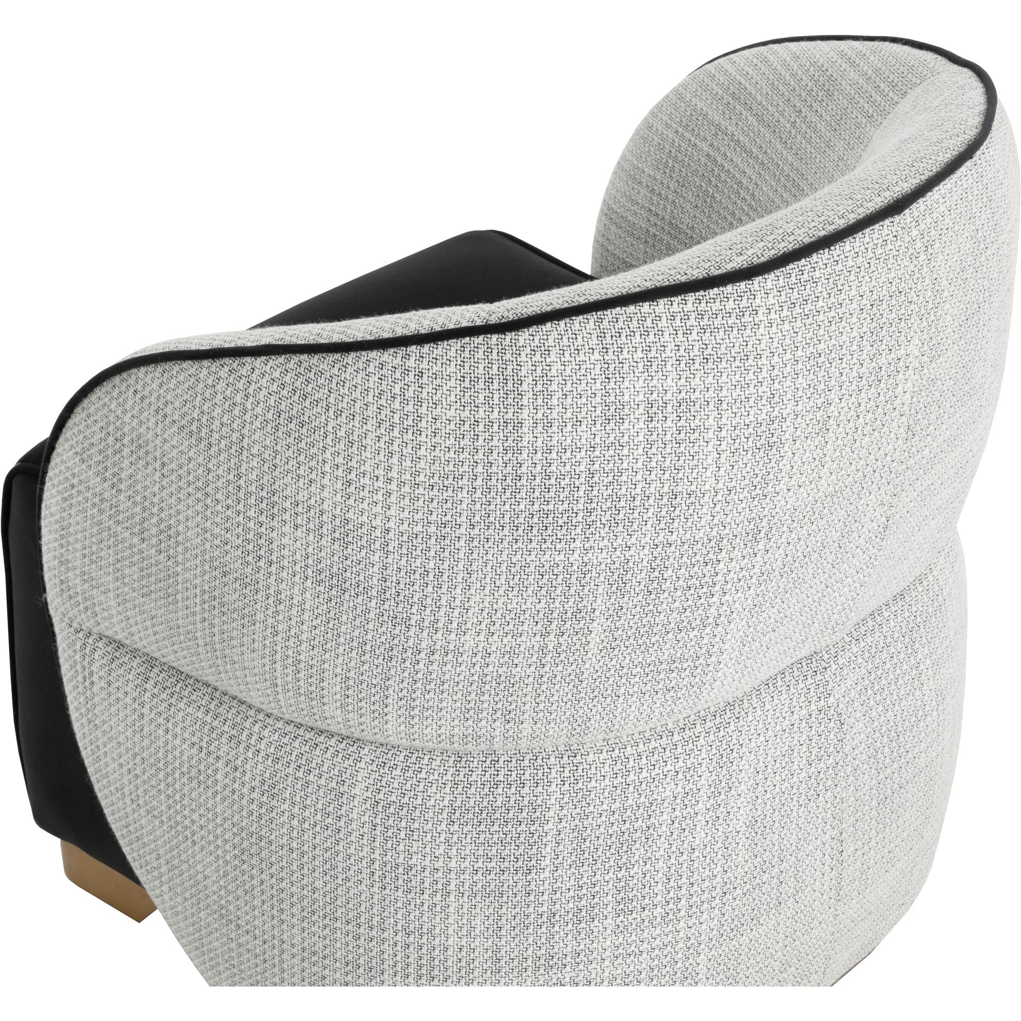 The Fatina Lounge Chair is a showstopper that will brighten up any living space or bedroom. Chic curves upholstered in stylish vera white pepper fabric create comfortable contours for a supportive backrest. Contrasting abbington black fabric makes the foam-filled seat feel luxuriously smooth.