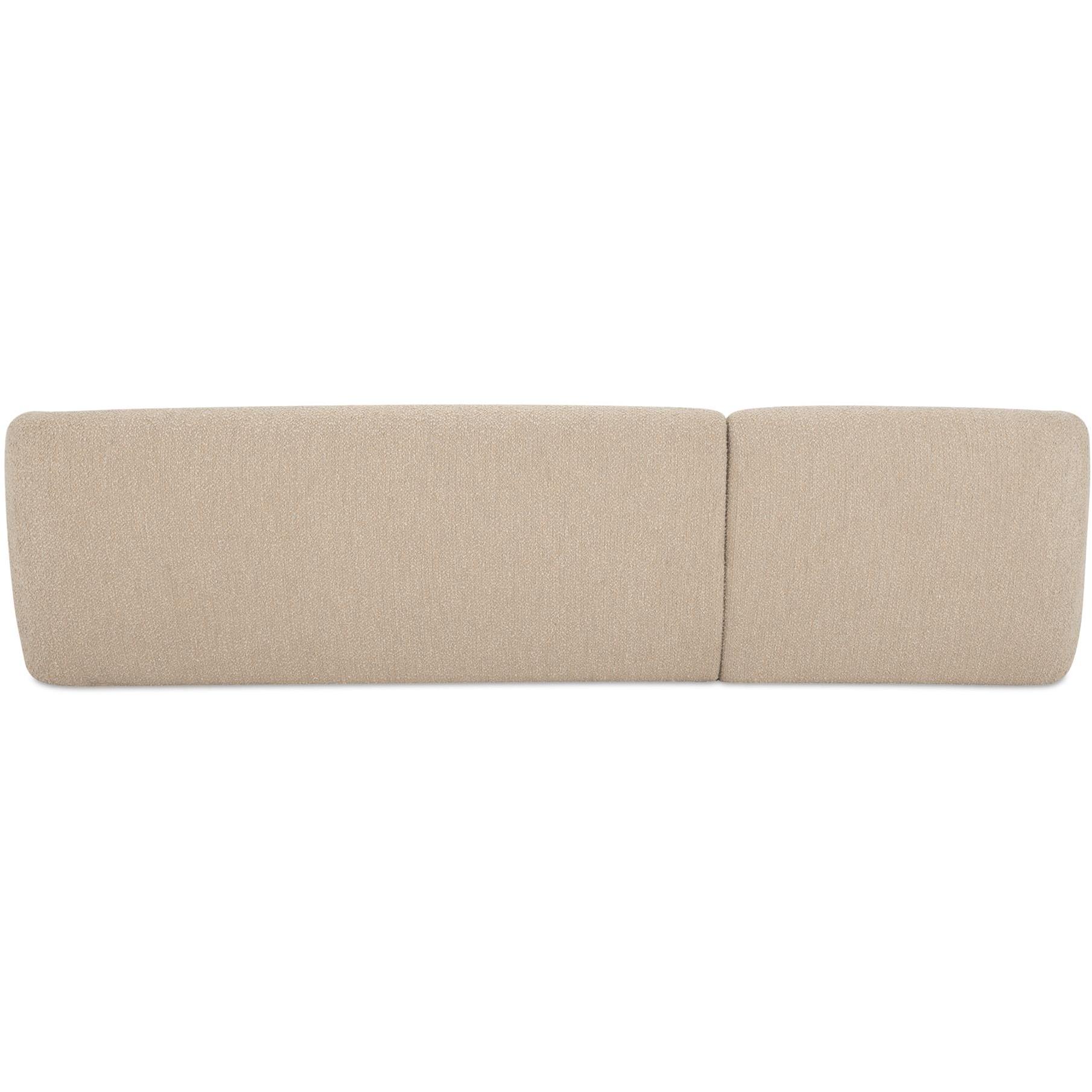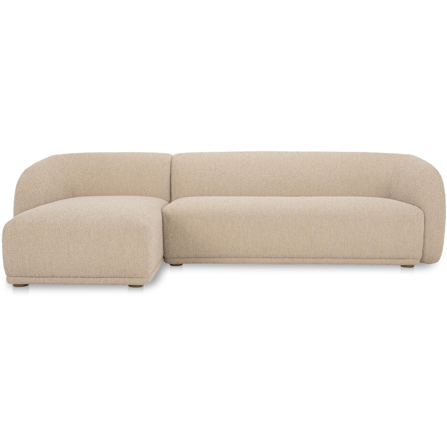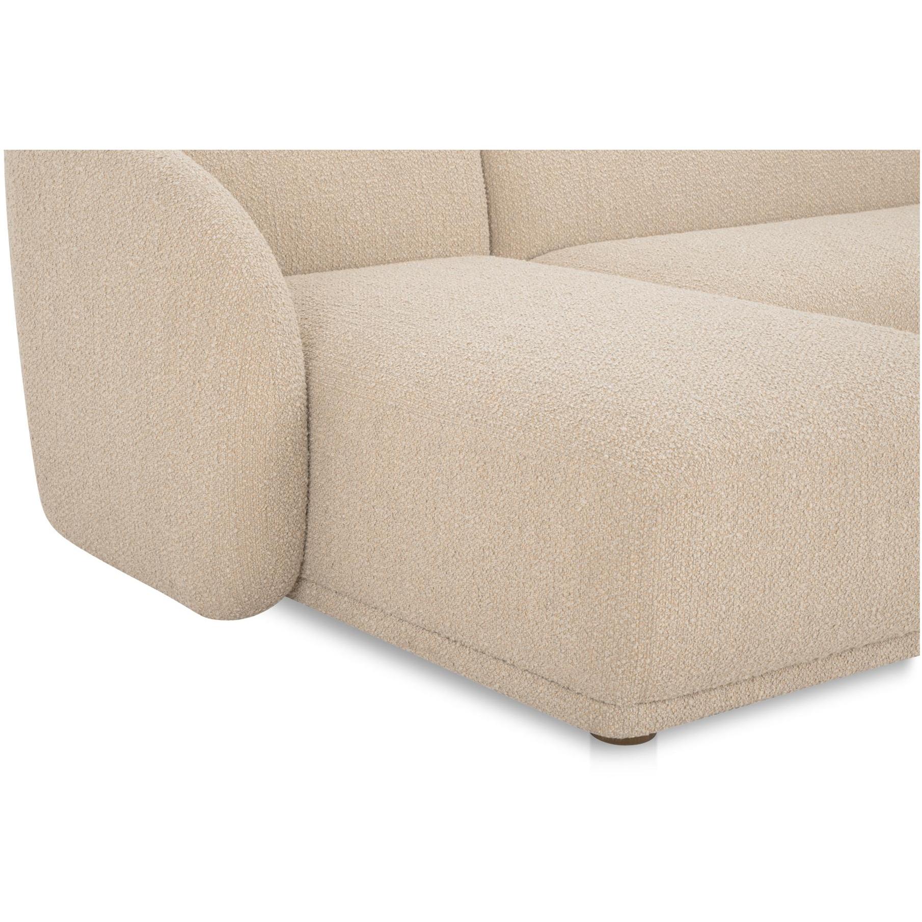 Constructed from solid beech and plywood, the Faye sectional’s unique curved back and firm, fixed bench seat rest on petite, rounded rubberwood legs. The exaggerated boucle fabric with a robust 100,000 rub count brings depth and an art deco feel to its contemporary form–a touch of elegance to expansive living.