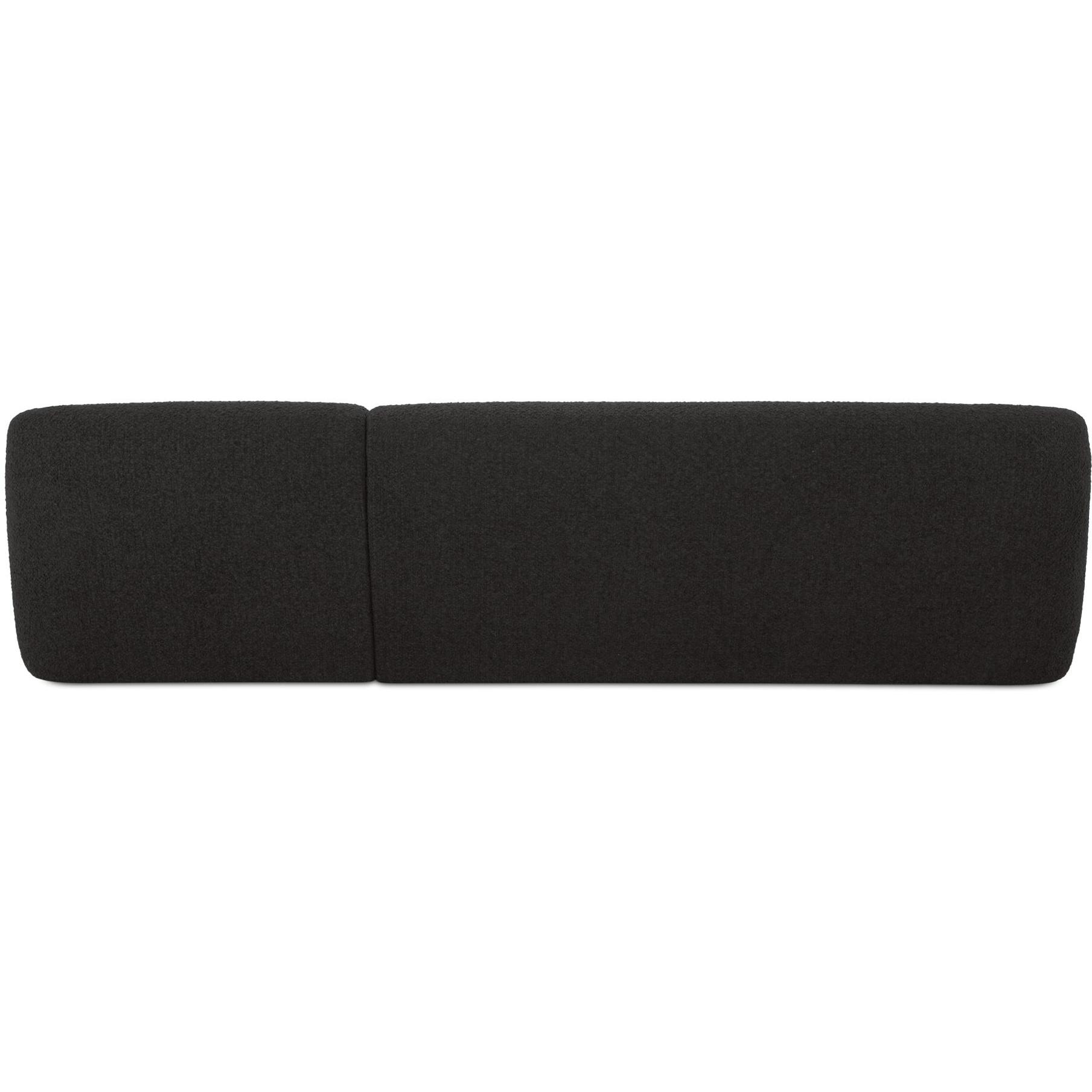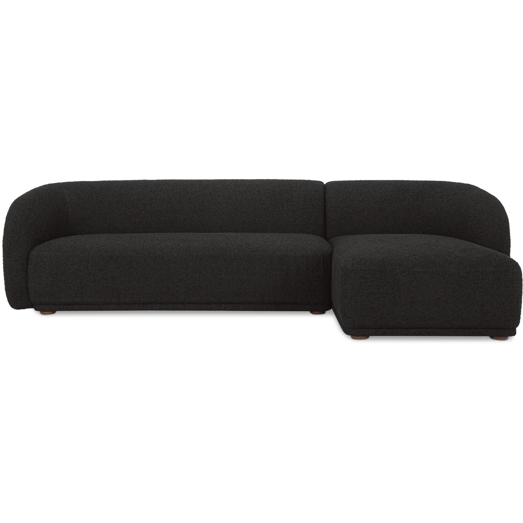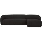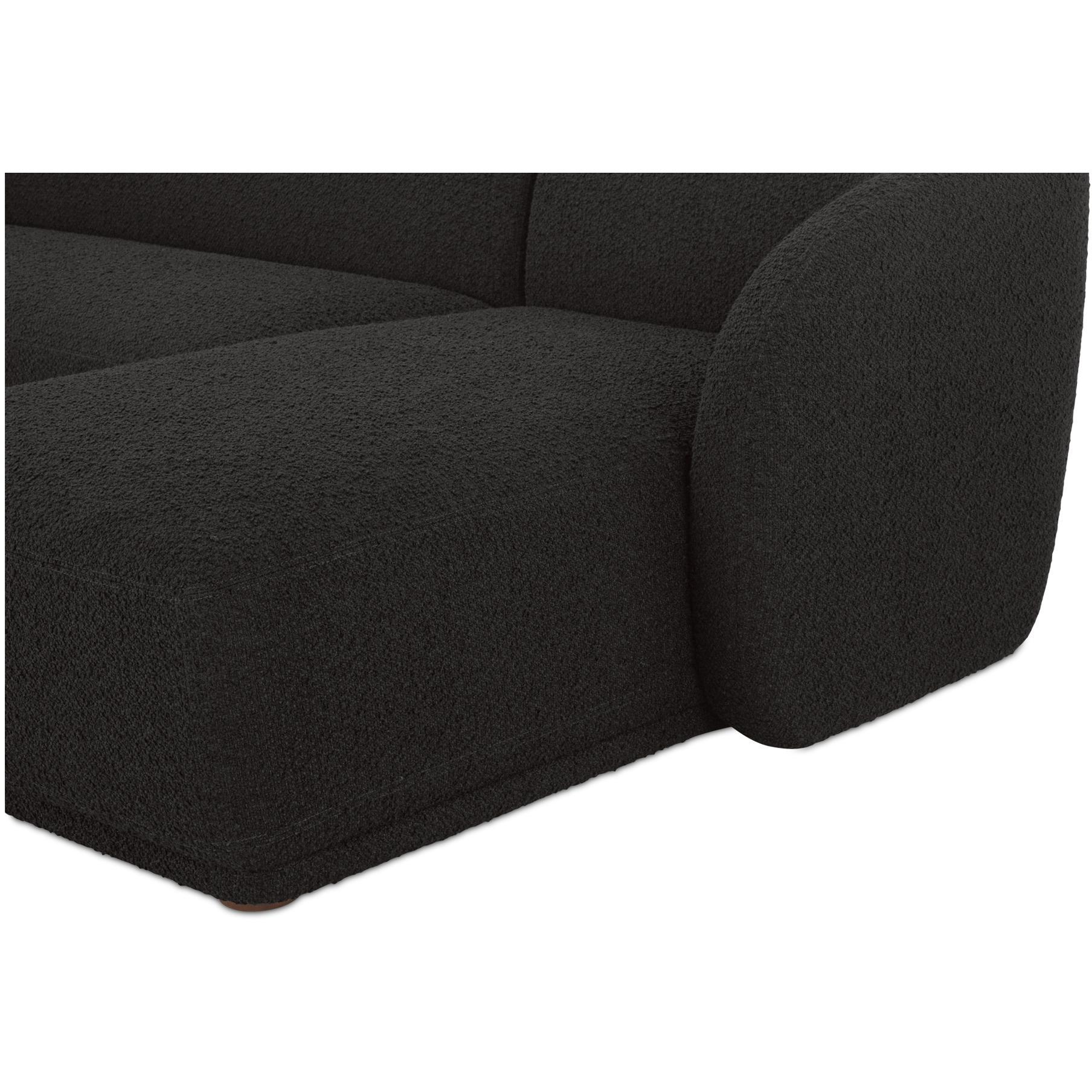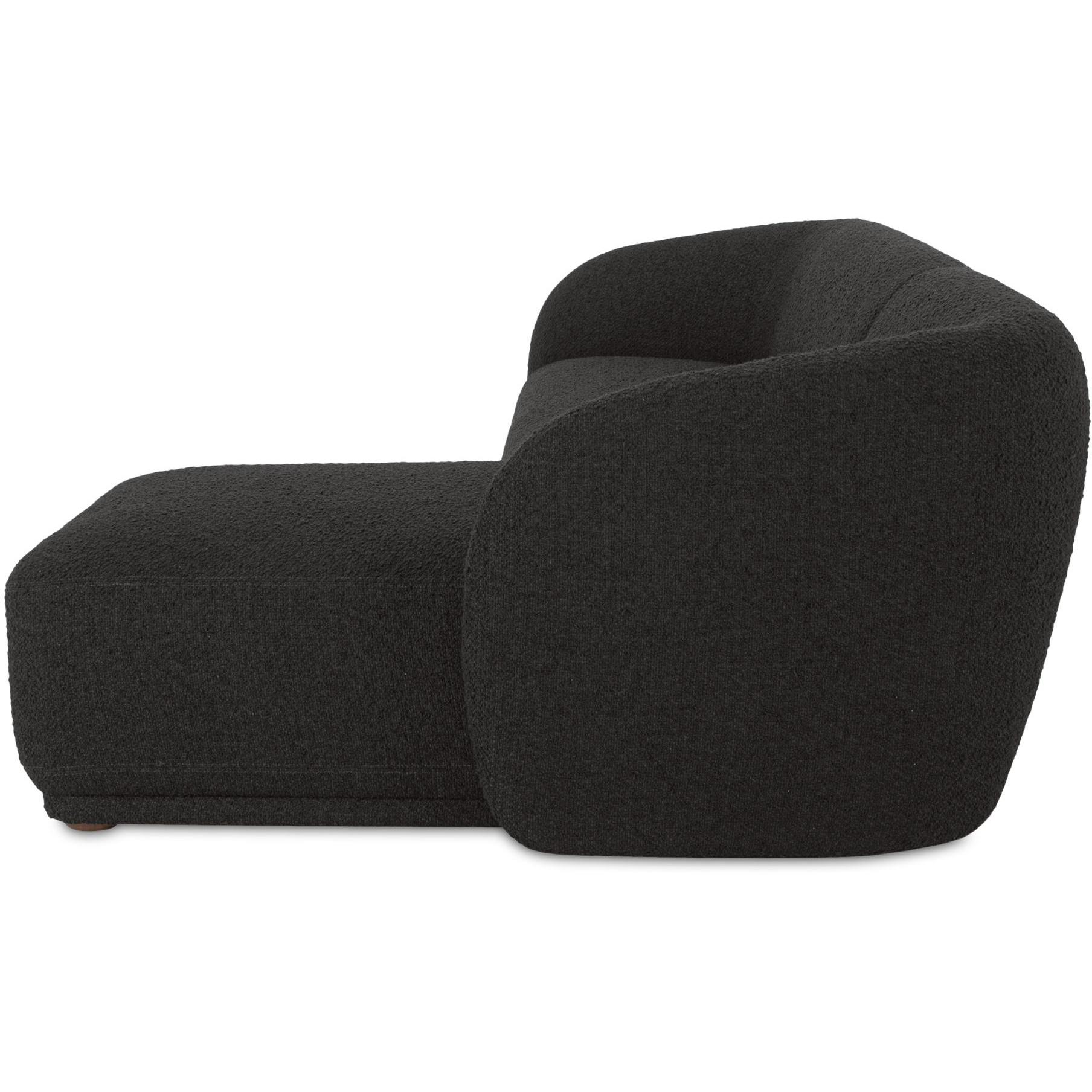 Constructed from solid beech and plywood, the Faye sectional’s unique curved back and firm, fixed bench seat rest on petite, rounded rubberwood legs. The exaggerated boucle fabric has a robust 100,000 rub count bringing depth and an art deco feel to its contemporary form–a touch of elegance to expansive living.