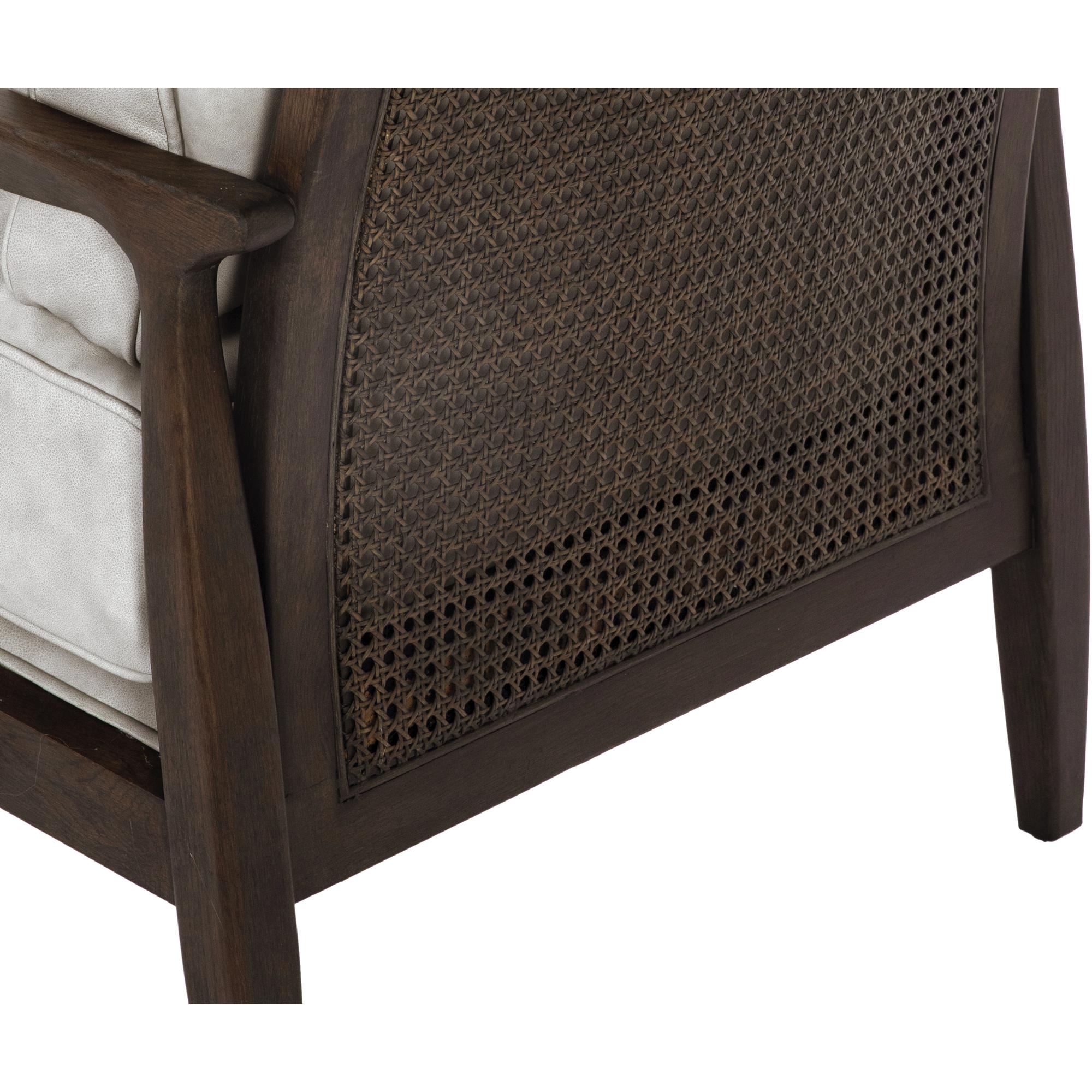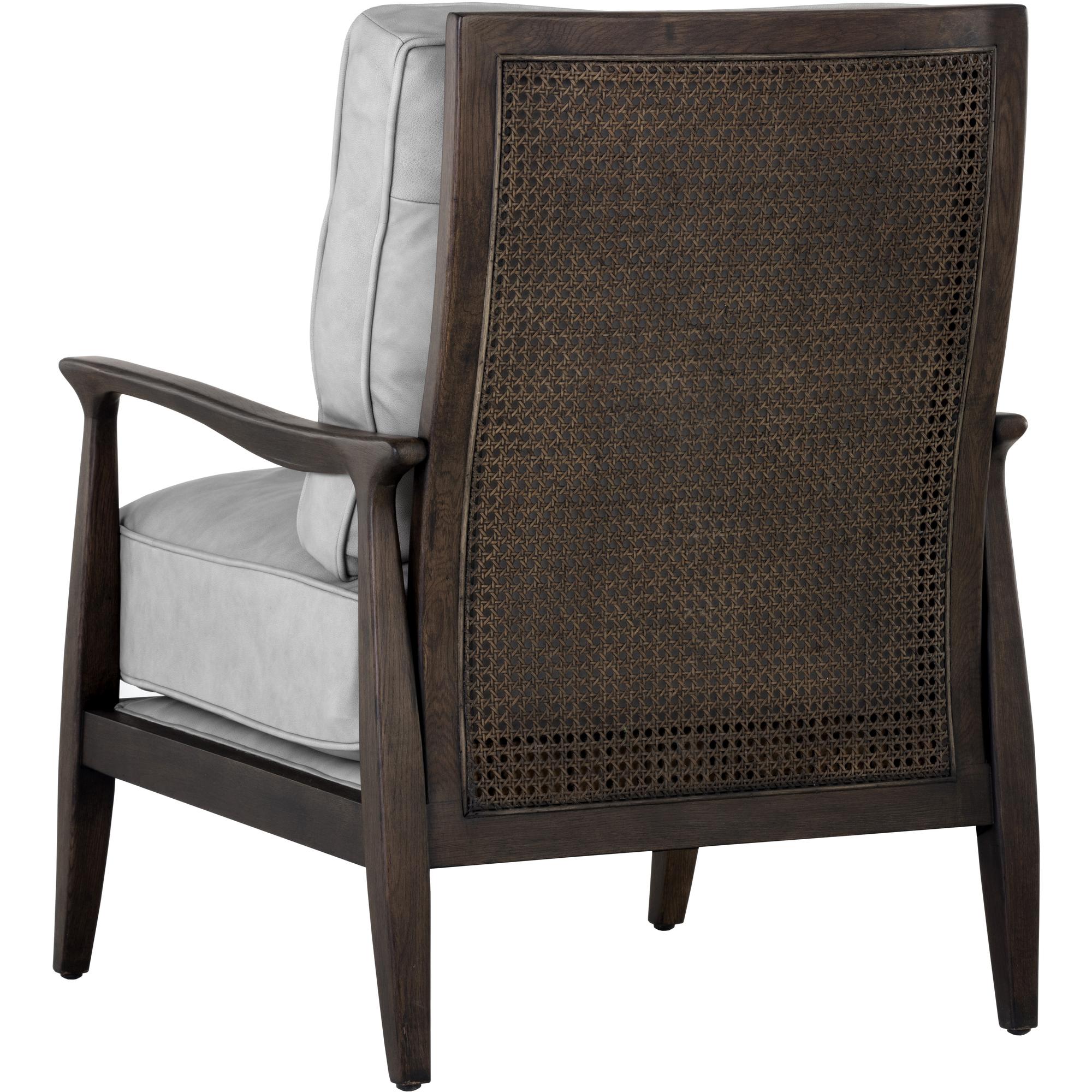 A handsome lounge chair that will make a statement. The mid-century design features a beautiful solid oak wood frame with a rattan seatback. Comfortable cushions in saloon light grey leather with sleek piping complete the look. Handle with Care: This design has been crafted with 100% genuine leather. Leather is a natural material; as such, colour variations, markings, wrinkles, grooves and light scratches are acceptable and appreciated characteristics. No two pieces are alike. This design has been crafted with rattan. This artisan-crafted material features intricate weaving that results in natural variations where no two pieces are alike. Colour and texture differences are to be expected and embraced with this natural material. Due to the weaving process used, the fibres in this material may display shorter or longer lengths where the weaving ends. Visit our Product Care page for more information on how to ensure the lasting beauty of this piece.