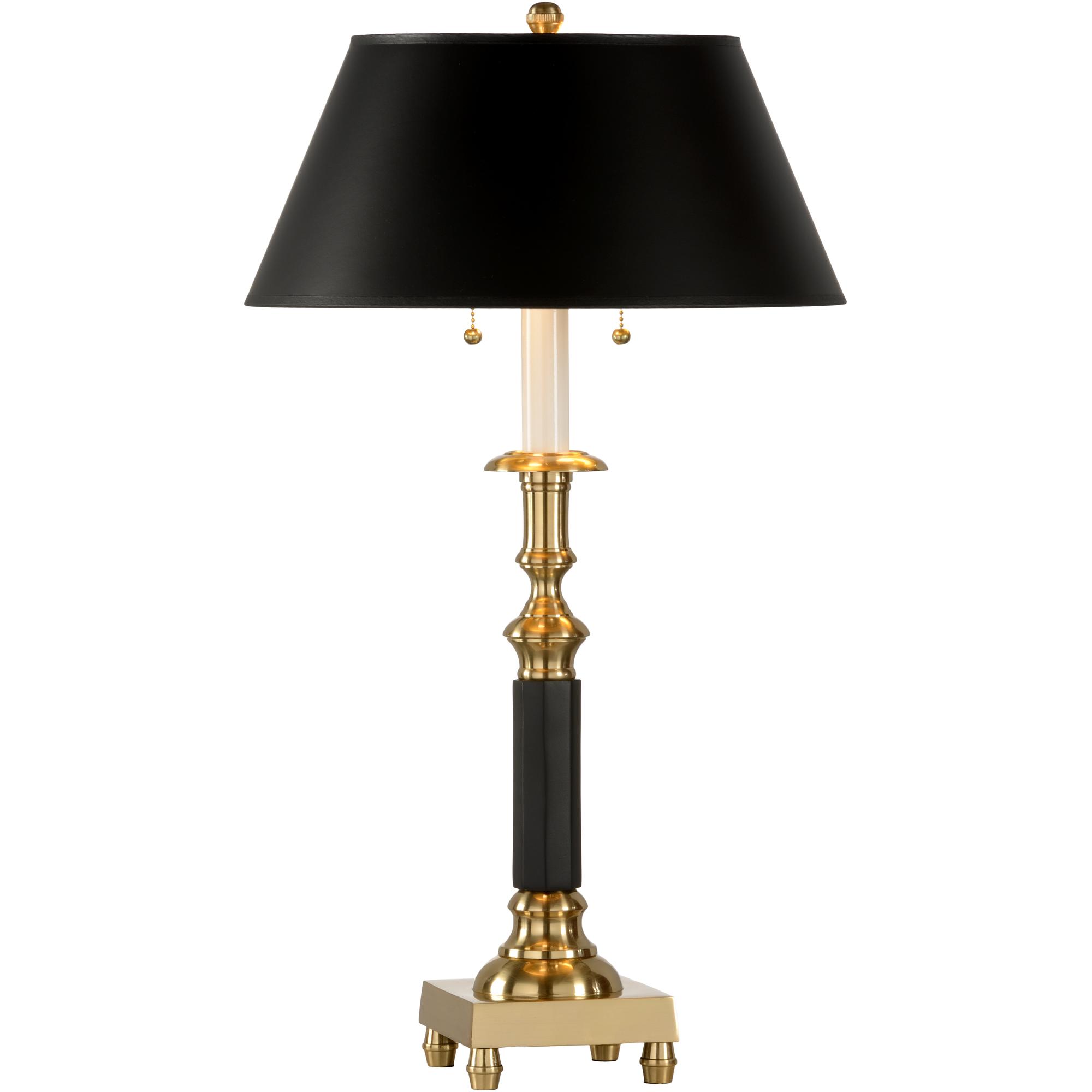 Faceted column table lamp with antique brass & black finishes