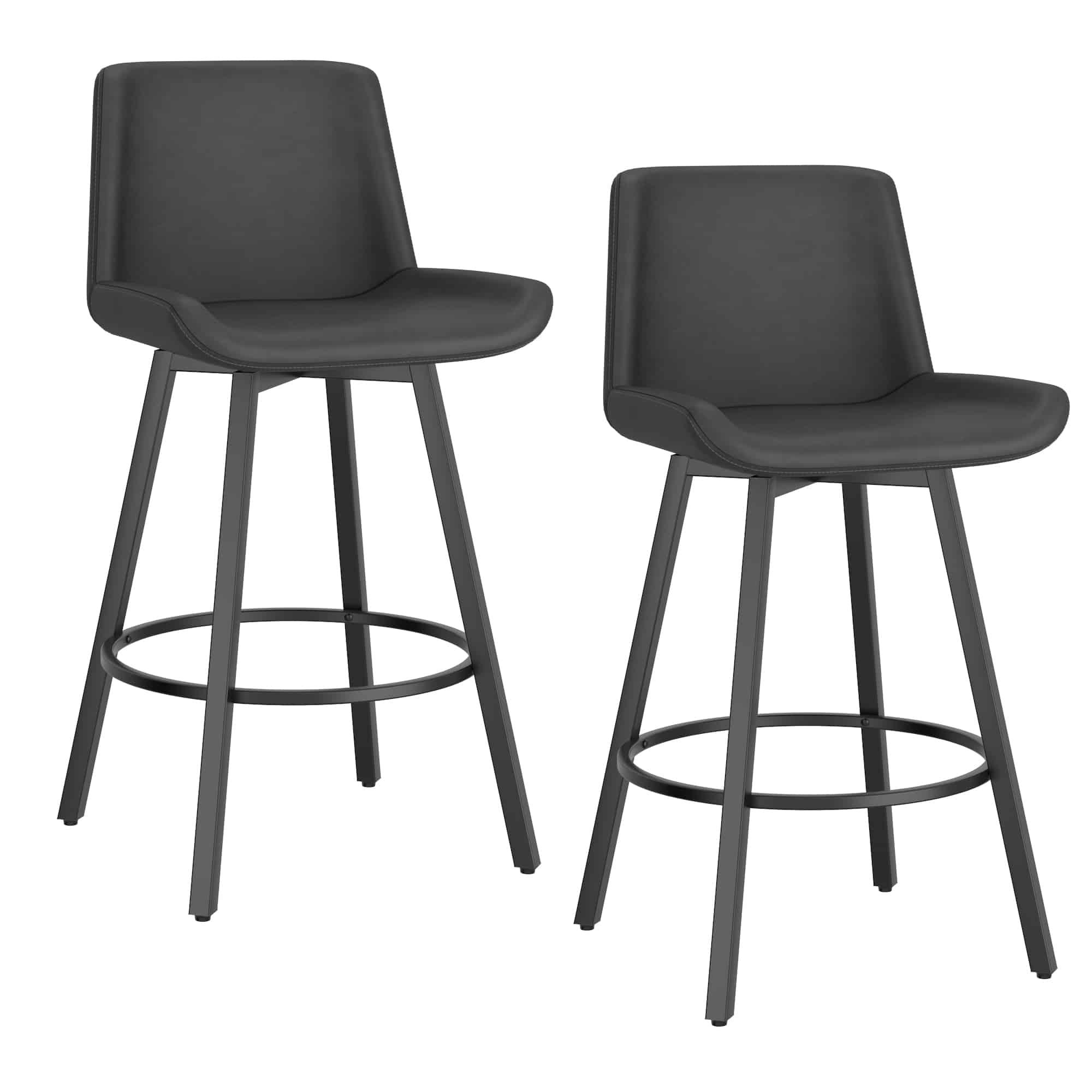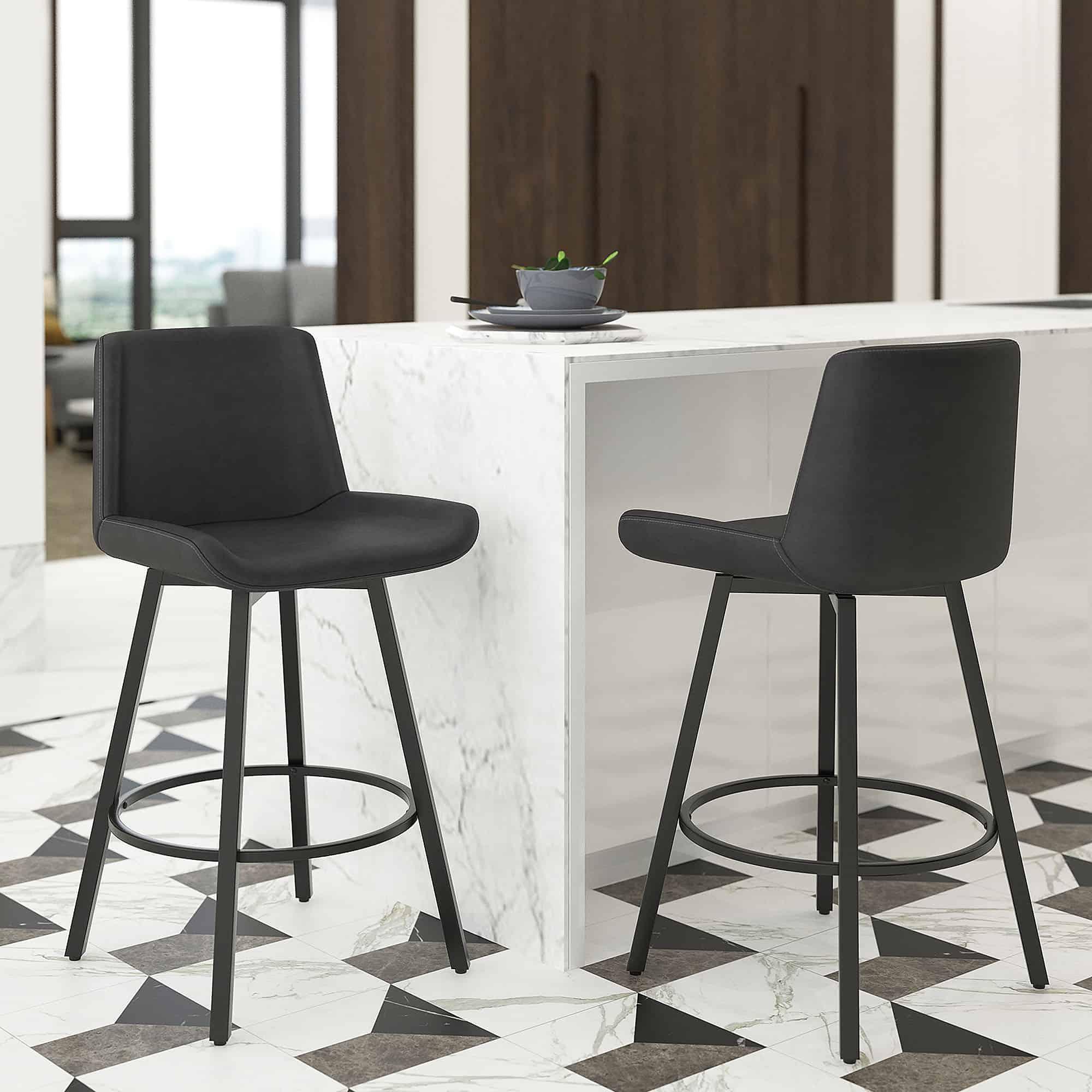 Fern 26″ Counter Stool, set of 2, with Swivel in Vintage Charcoal Faux Leather and Black