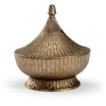 Elevate your bookcase or tabletop with our Fig Canister. Featuring a textured design with a silhouette similar to a genie bottle, our canister is crafted of cast aluminum with an antique bronze finish. This 10″ accent has a removable top and can be used to store small personal trinkets.