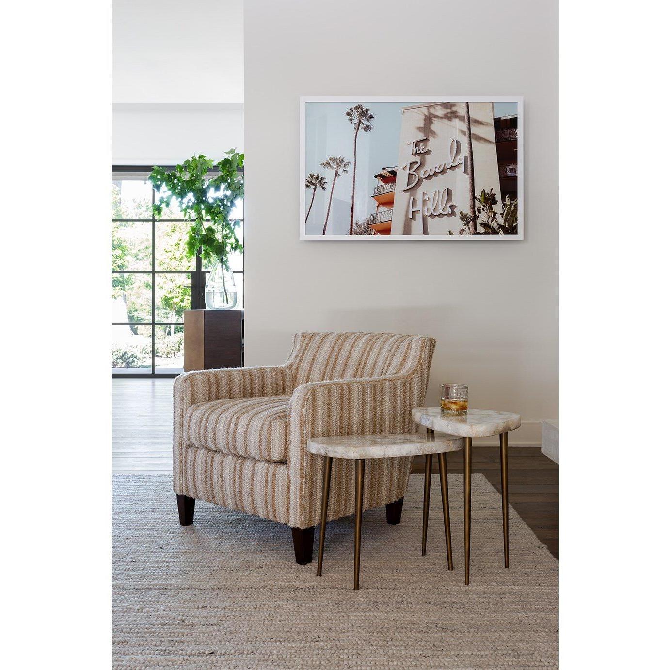 Infuse spaces with an elemental elegance. An intricate agate top is offset by sleek antique satin brass legs.