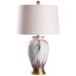 Hand painted blue and white vase lamp with an antique gold leaf mounting.