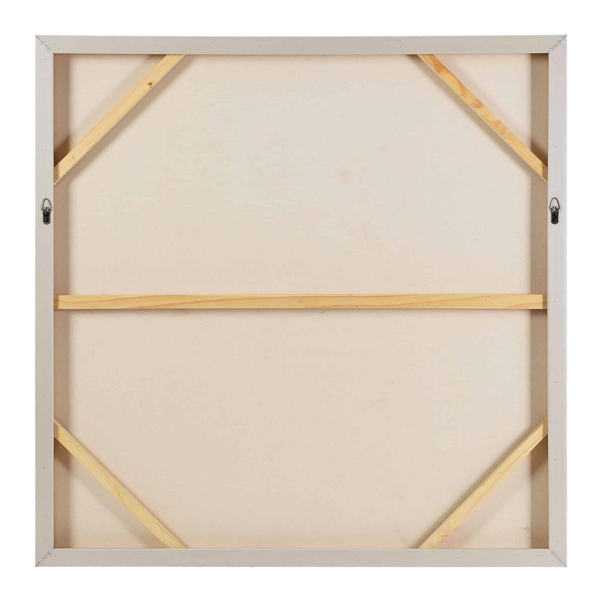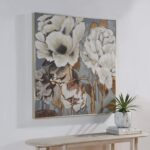 This framed canvas’ floral centerpiece brings a romantic flair to clients’ classic country or modern rustic homes. Styled among wood-based furnishings, this work of art will integrate effortlessly into its organic-inspired surroundings. The marriage of rich gold tones, gold leaf details and soothing blue give this design great complexity and allows for it to bring both warm and cool energy into the bedroom or living room space.