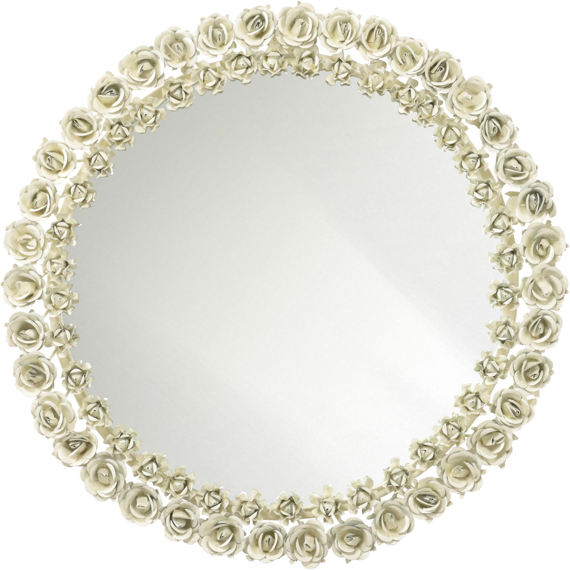 Beautiful, exquistely detailed iron mirror with antique white iron floral frame. Key hole fastener for hanging.