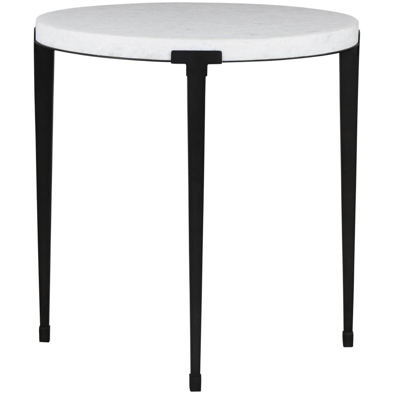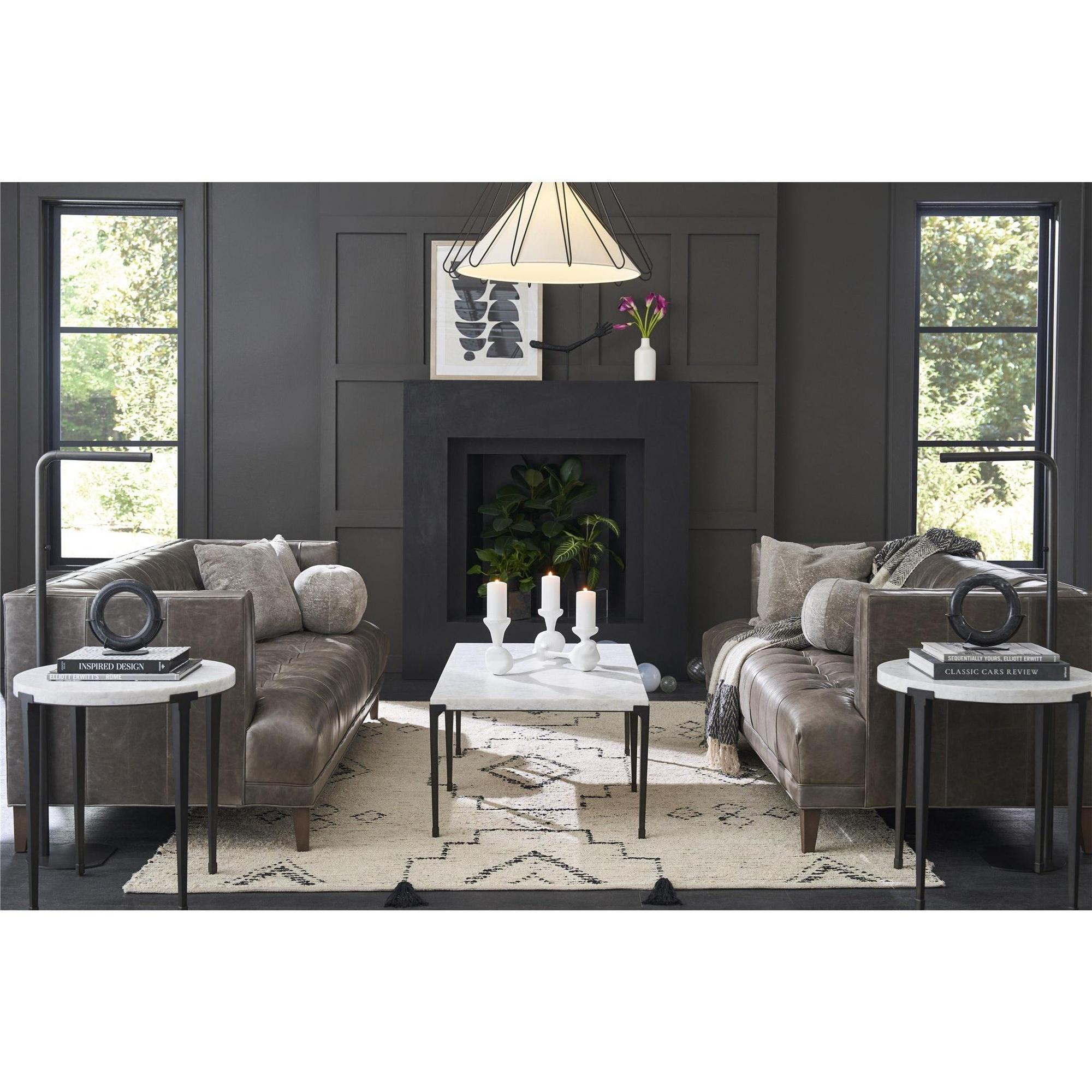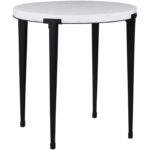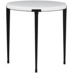 The Floyd End Table presents a study in minimalistic elegance with its sturdy stone top and four sleek metal legs, offering a refined and practical addition to any living space with its clean lines and enduring sophistication.