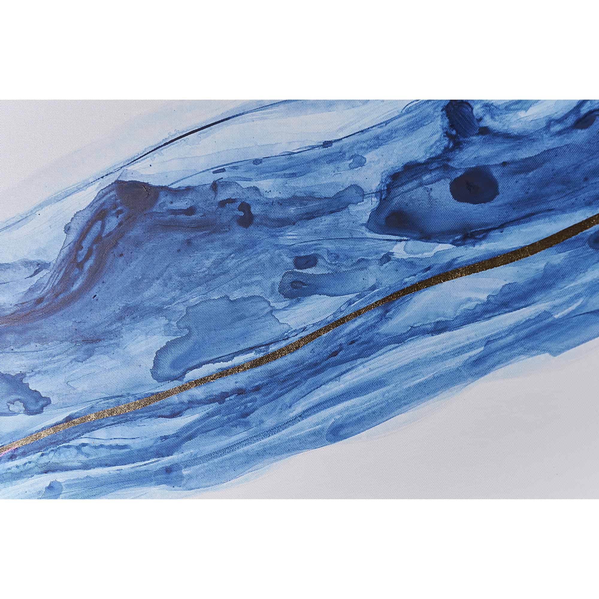 This diptych painting creates a refreshing mood with dramatic blue and gold strokes similar to flowing water. Features a gold finished floater frame. Each artwork is hand-painted and will feature slight variations that make every piece unique.
