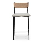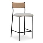 Crafted with an exquisite mix of materials, the Foley counter stool effortlessly merges rustic allure with contemporary grace. Its slender metal frame supports an easy-to-maintain seat upholstered in sumptuous bouclé Performance fabric, while the curved paper rope back evokes an essence of tranquility and warmth, offering a compelling invitation to linger.