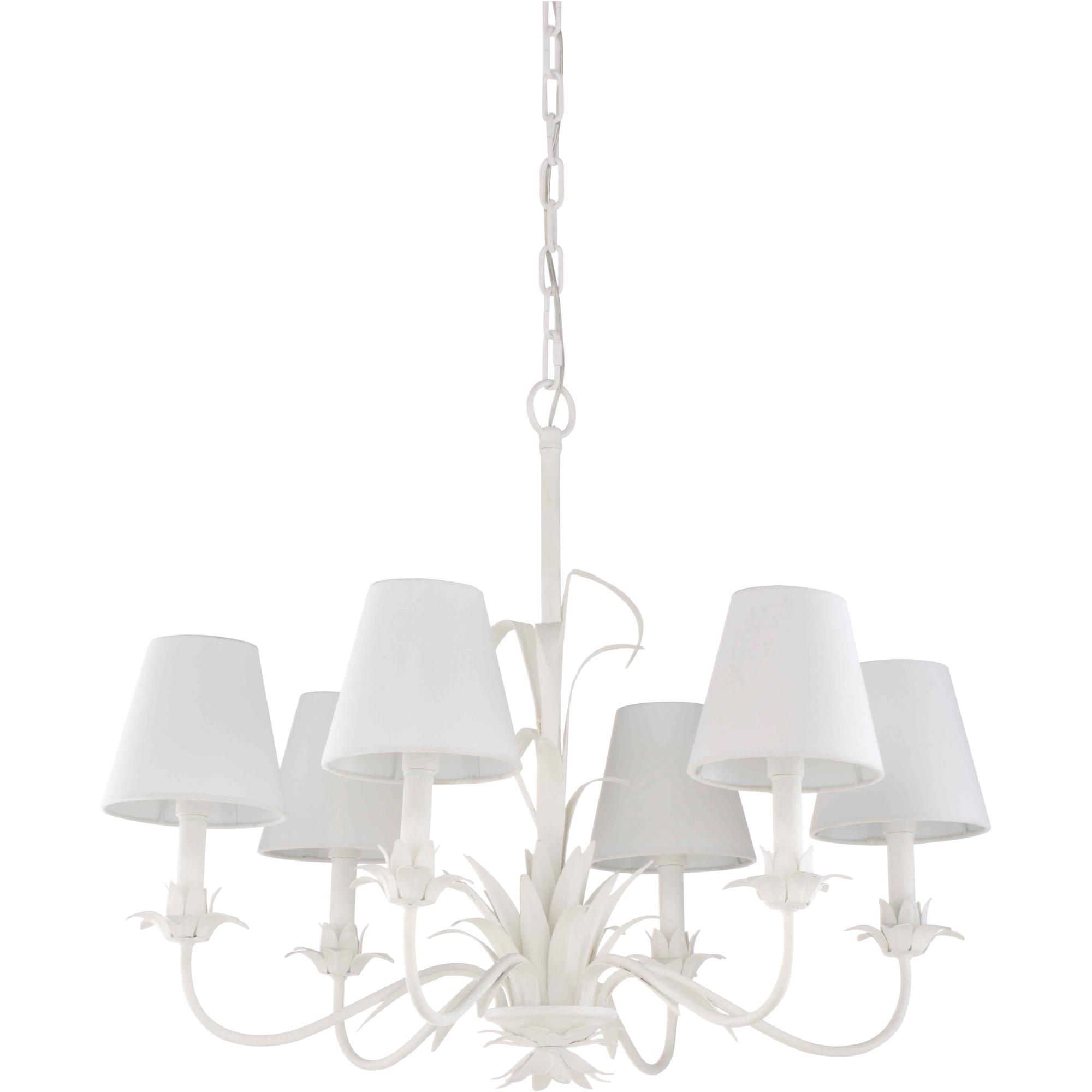Designed for Wildwood by Meg Braff Designs, Fontana Chandelier features delicate details inspired by a bubbling fountain. This stunning tole chandelier comes with six lights, white shades and 70″ of chain for hanging.