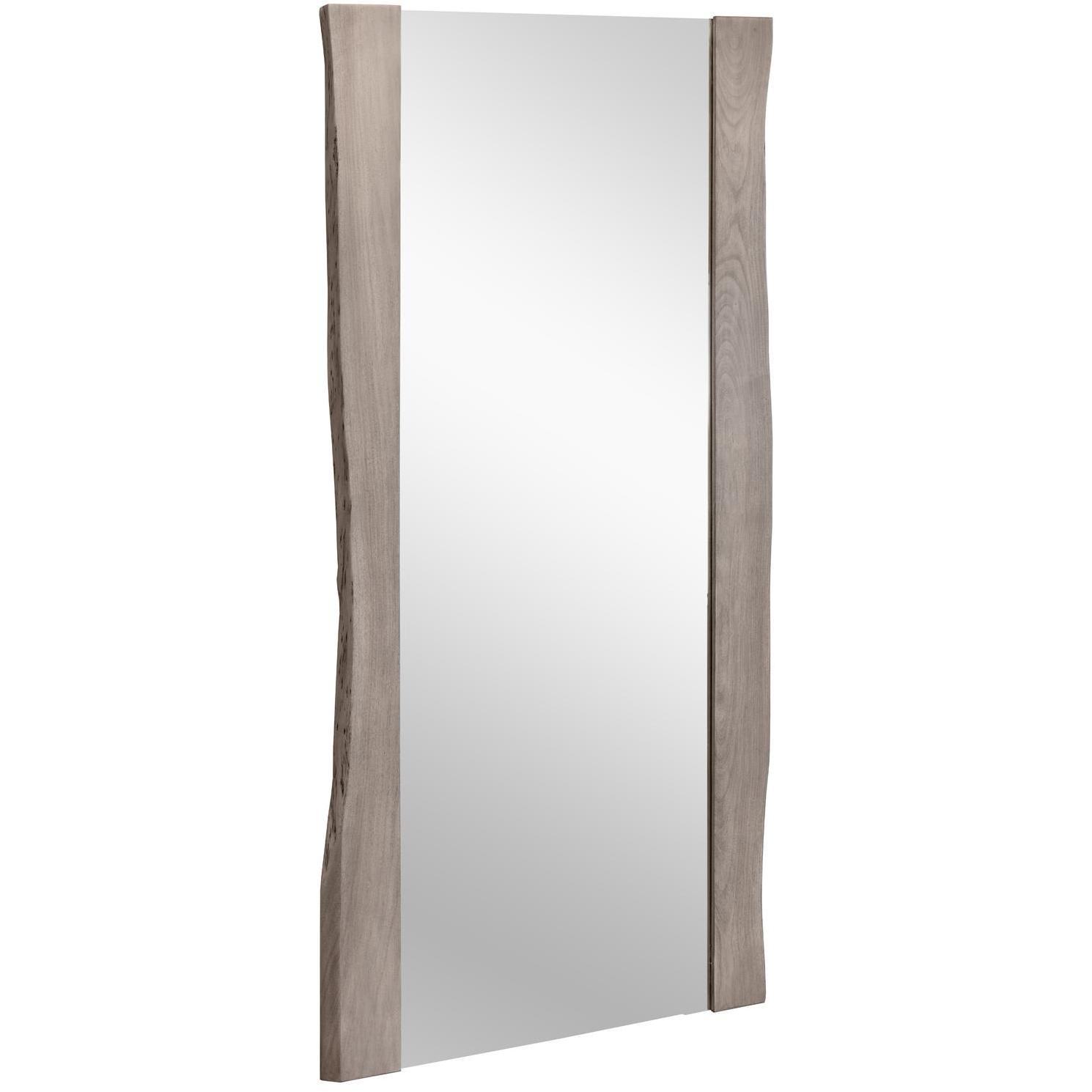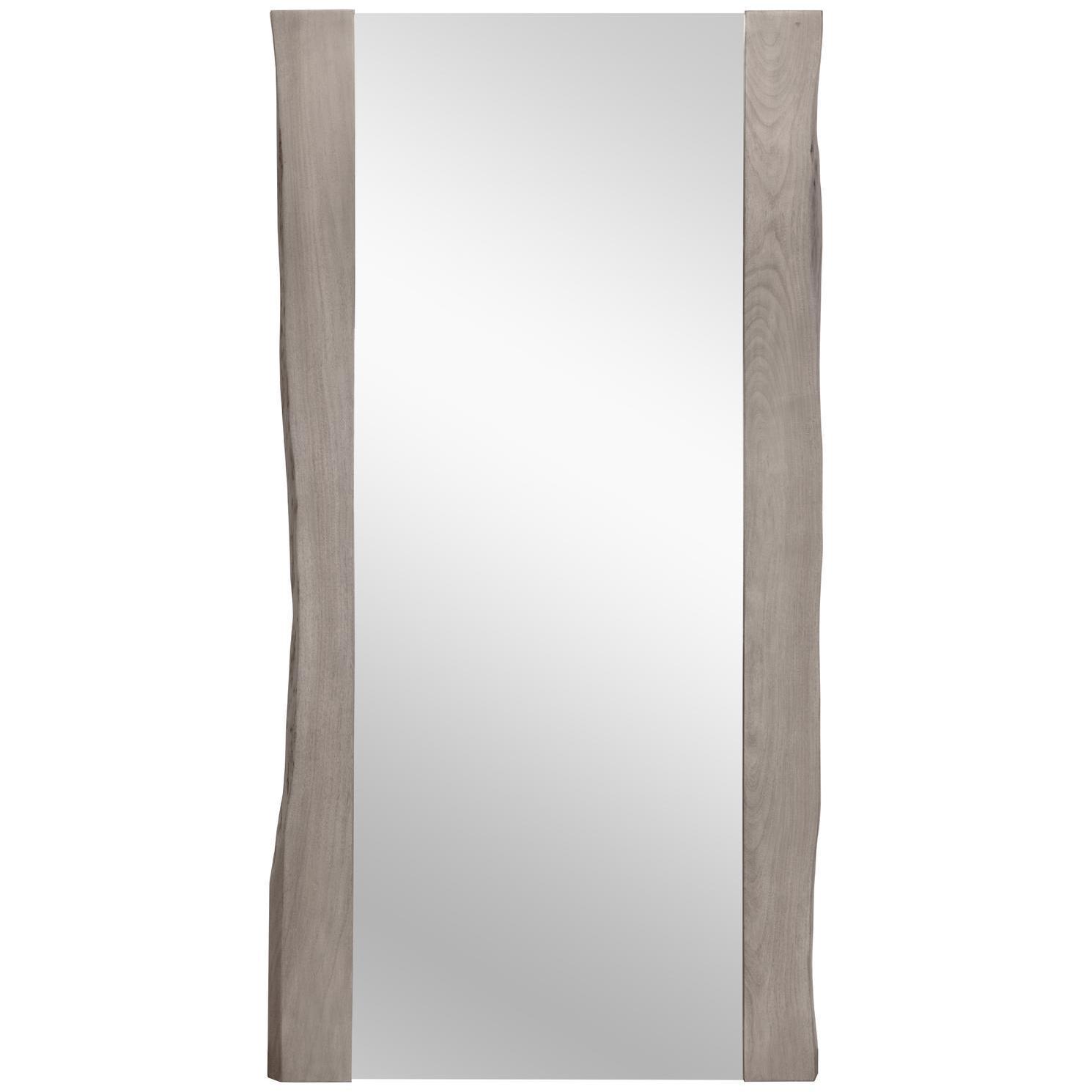 For a sense of rustic glamour, this floor mirror features a live-edge frame crafted from acacia wood in a grey finish. The overall width may vary due to natural edges. Anti-tip kit included. Made in India. With refined craftsmanship, this design was brought to life by skilled local artisans. By nature, these materials develop unique imperfections such as fissures, markings and colour variations for a truly one-of-a-kind piece.